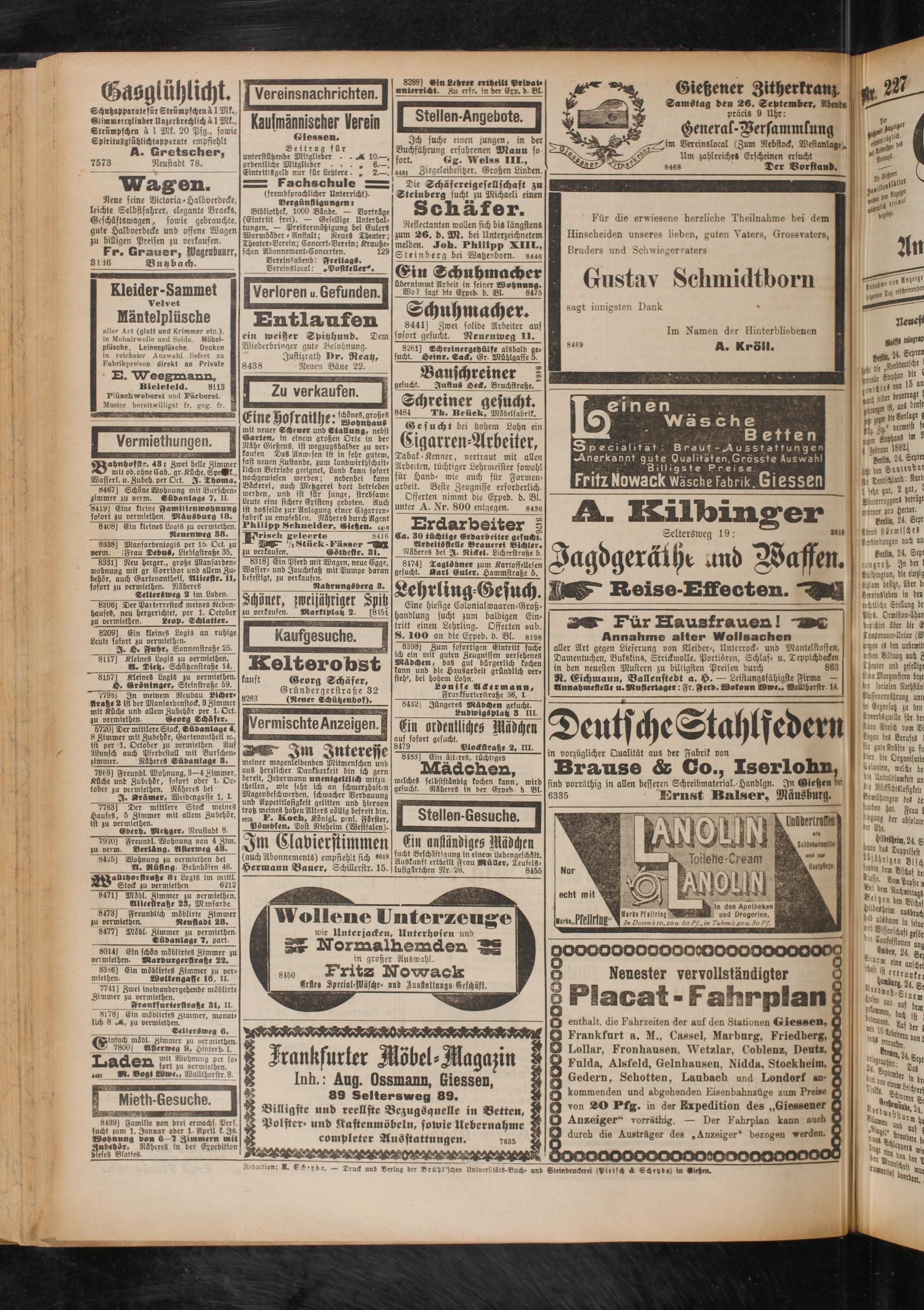 Wo? sagt die Exped- d. Bl. 8475