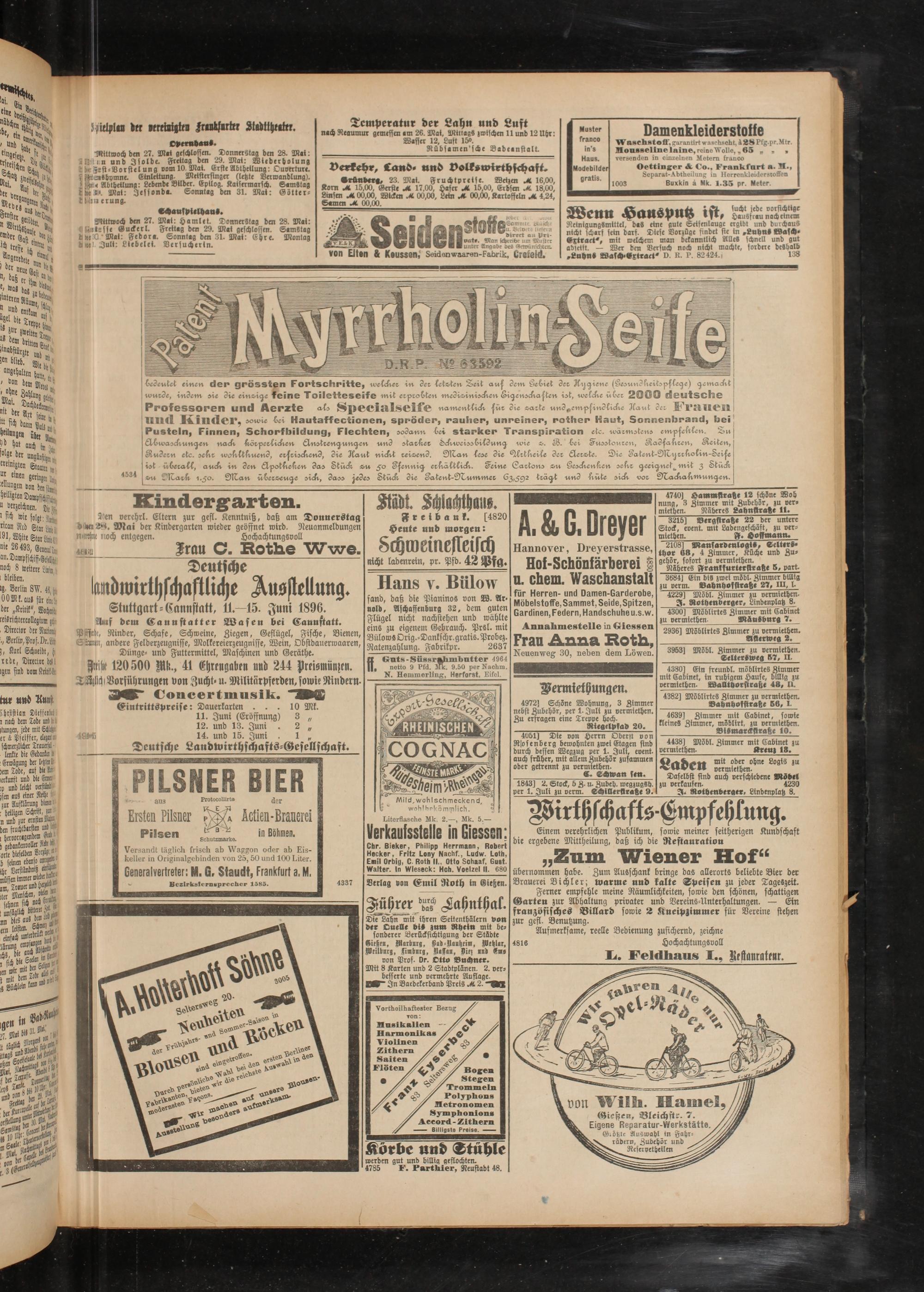 Hof-Schönfärberei ß u. ehern. Waschanstalt für Herren- und Damen-Garderobe, Möbelstoffe, Sammet, Seide, Spitzen, Gardinen, Federn, Handschuhe u.s.w.
