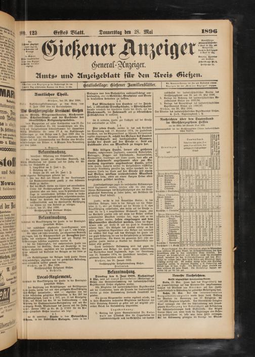Dienstag den 2. Juni 1896, Nachmittags L Uhr, wird auf LonyS Felstukeller (Westanlage) zu Gießen eine Generalversammlung deS landwirthschaftlichen BezirkSvereinS Gießen abgehalten werden.
