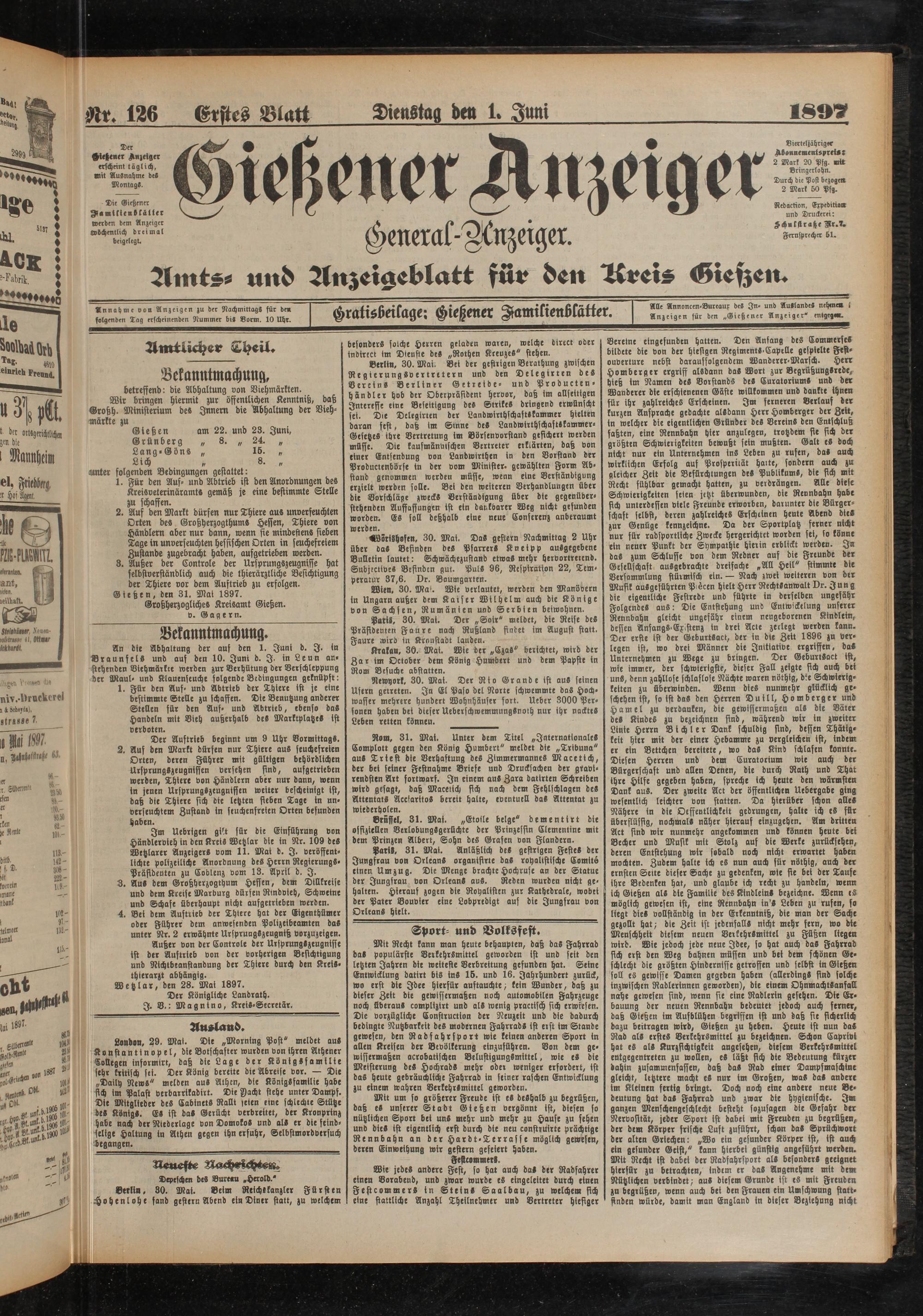 Gießener Anzeiger erscheint täglich, Mit Ausnahme deS