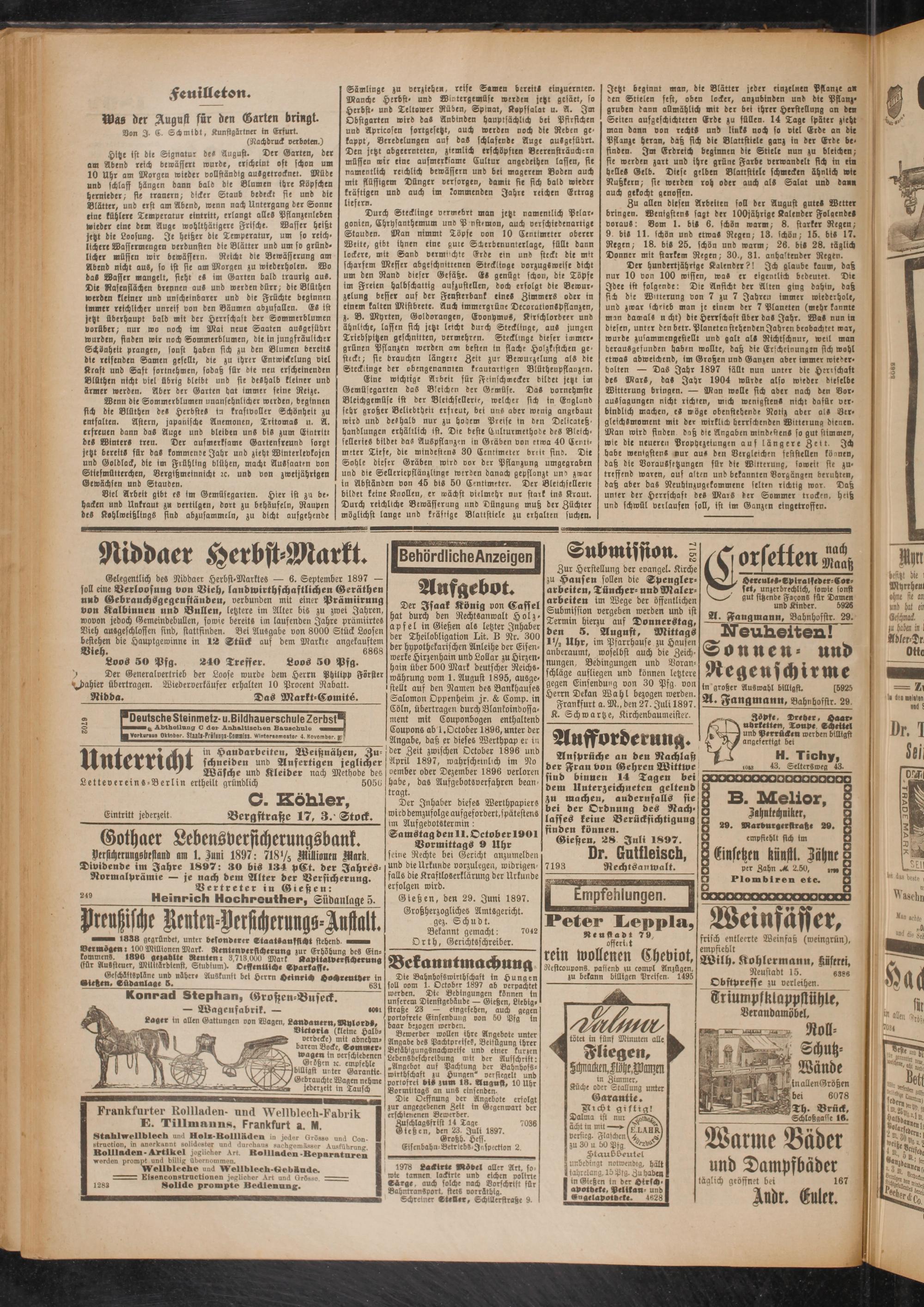 Gelegentlich de- Niddaer Herbst-Marktes — 6. September 1897 — soll eine Berloosuug von Vieh, landwirthschastlichen Gerätheu uud Gebrauchsgegeuftändeu, verbunden mit einer Prämiirung von Kalbiuueu und Bullen, letztere im Alter bis zu zwei Jahren, wovon jedoch Gemeindebullen, sowie bereits im laufenden Jahre prämiirtes Vieh ausgeschlossen sind, stattfinden. Bet Ausgabe von 8000 Stück Loosen bestehen die Hauptgewinne in 158 Stück auf dem Markte angekauftem Vieh. 6868