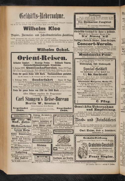 Hiermit beehre ich mich einem geehrten Publikum von Gießen und Umgegend anzuzeigen, daß ich mit dem heutigen Tage die am hiesigen Platze unter der Firma