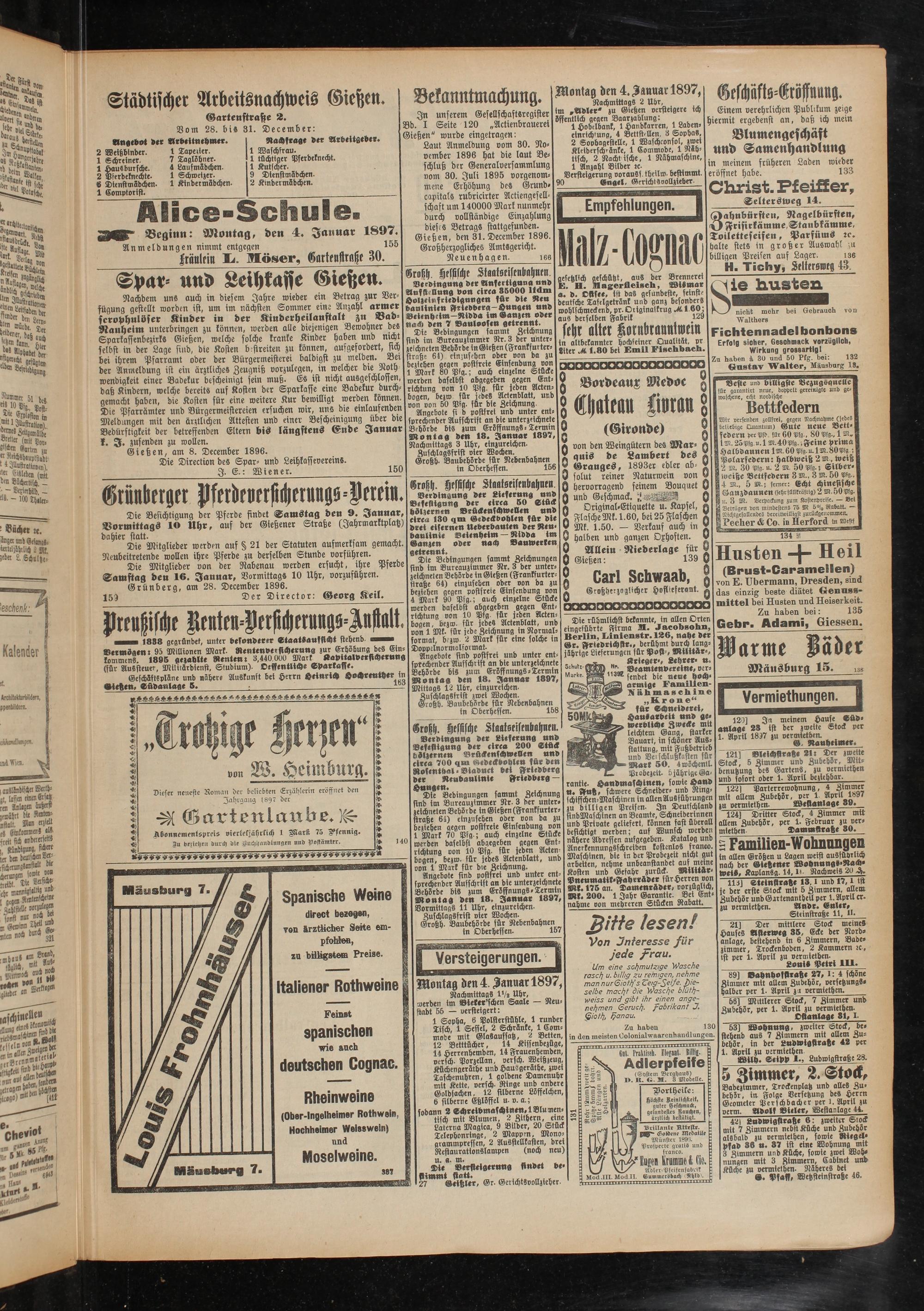 Beginn: Montag, den 4. Januar 1897.