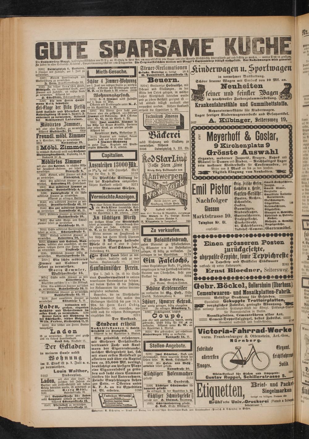 Per 1. Juli d. Js. ist die Stelle Vereins von Oberheffen, steht zum 'eines Hausverwalters in unferm Verkauf bei 3234