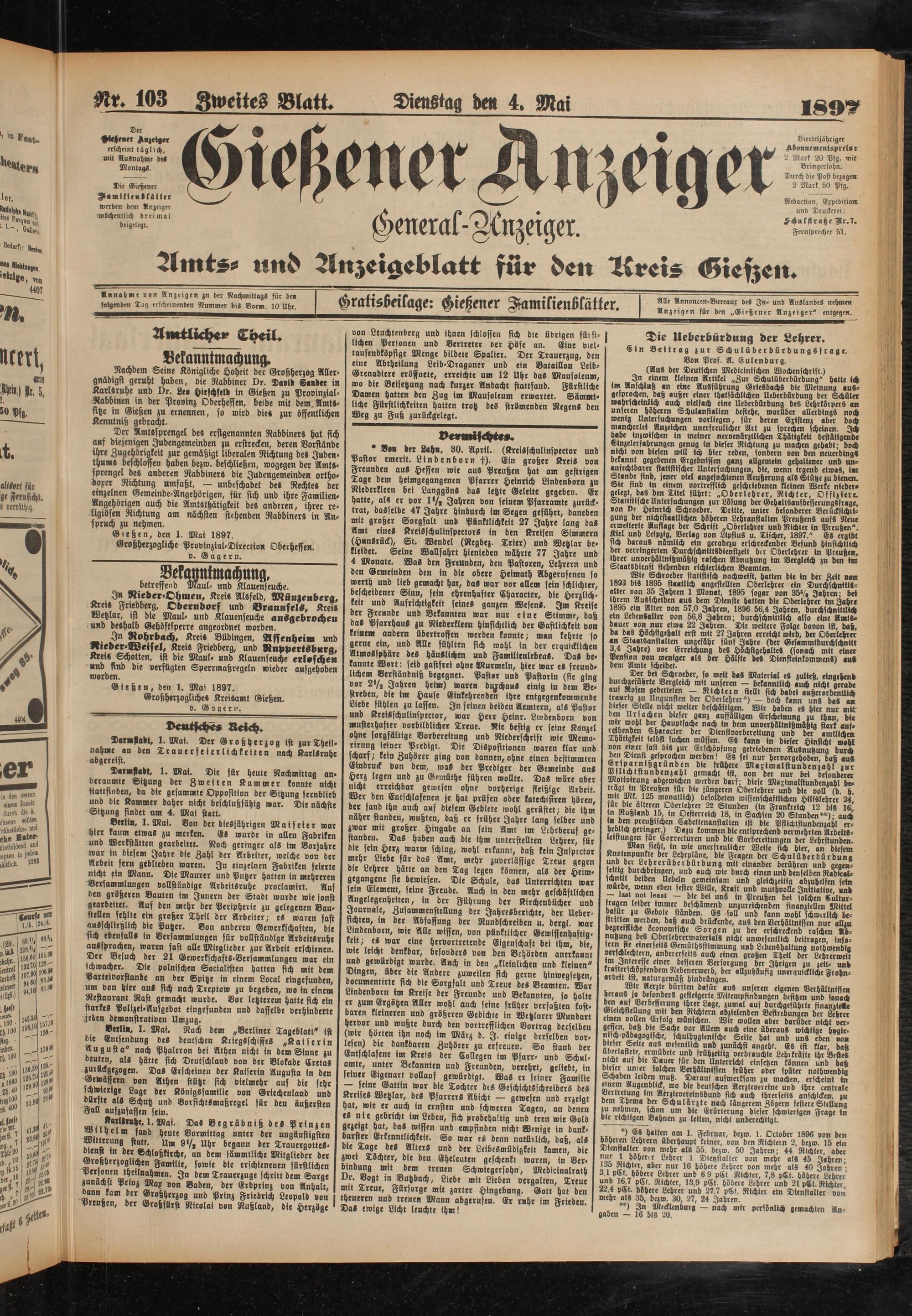 Die Gießener IlamikieuötLtter werden dem Anzeiger wöchentlich dreimal beigelegt.
