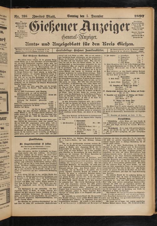 Die Gießener Mnmitienklälter werden dem Anzeiger Wöchentlich dreimal beigelegu