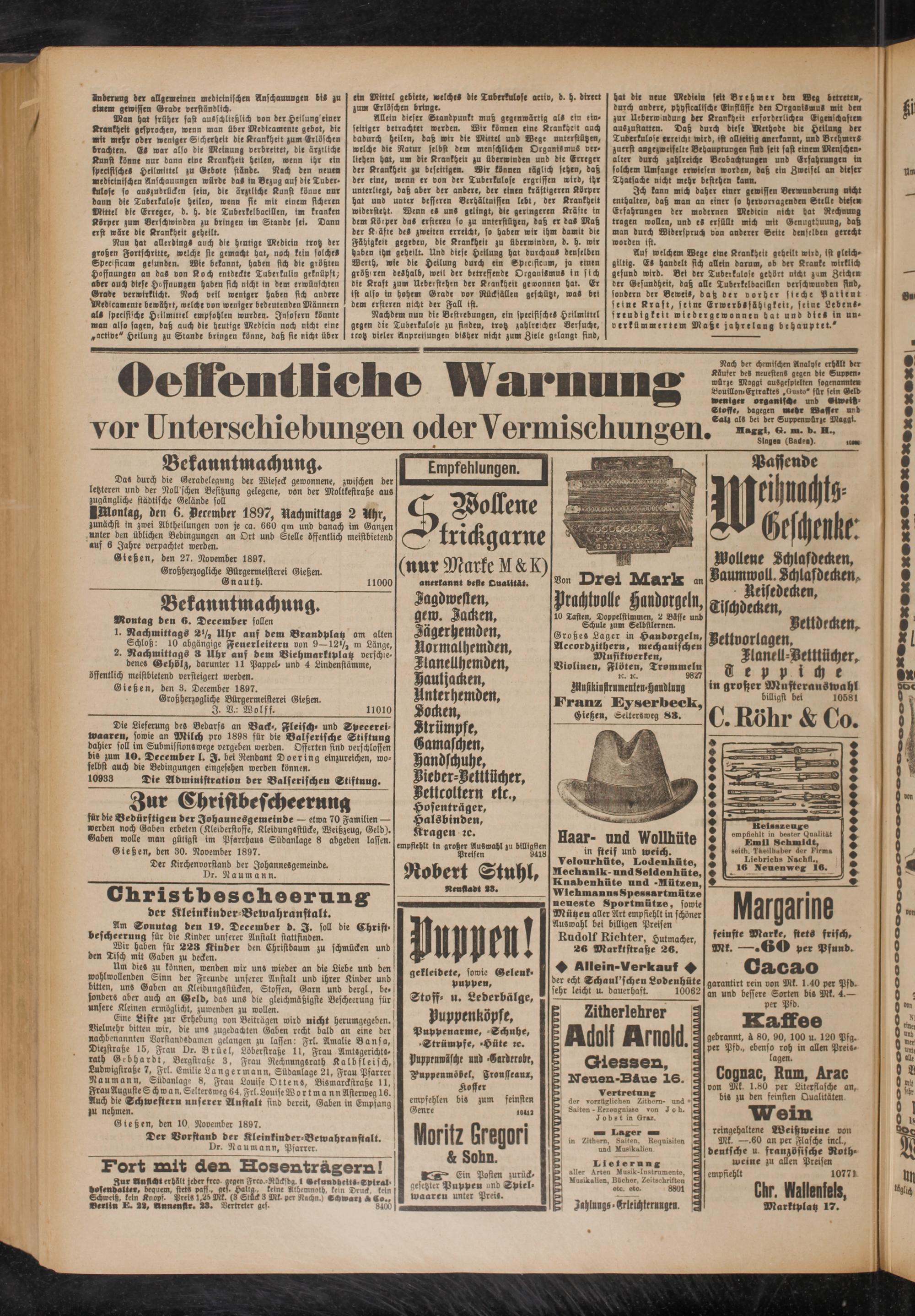 für die Bedürftigen der Johaunesgemeiude — etwa 70 Familien — werden noch Gaben erbeten (Kleiderstoffe, Kleidungsstücke, Weißzeug, Geld). Gaben wolle man gütigst im Pfarrhaus Südanlage 8 abgeben lasten.