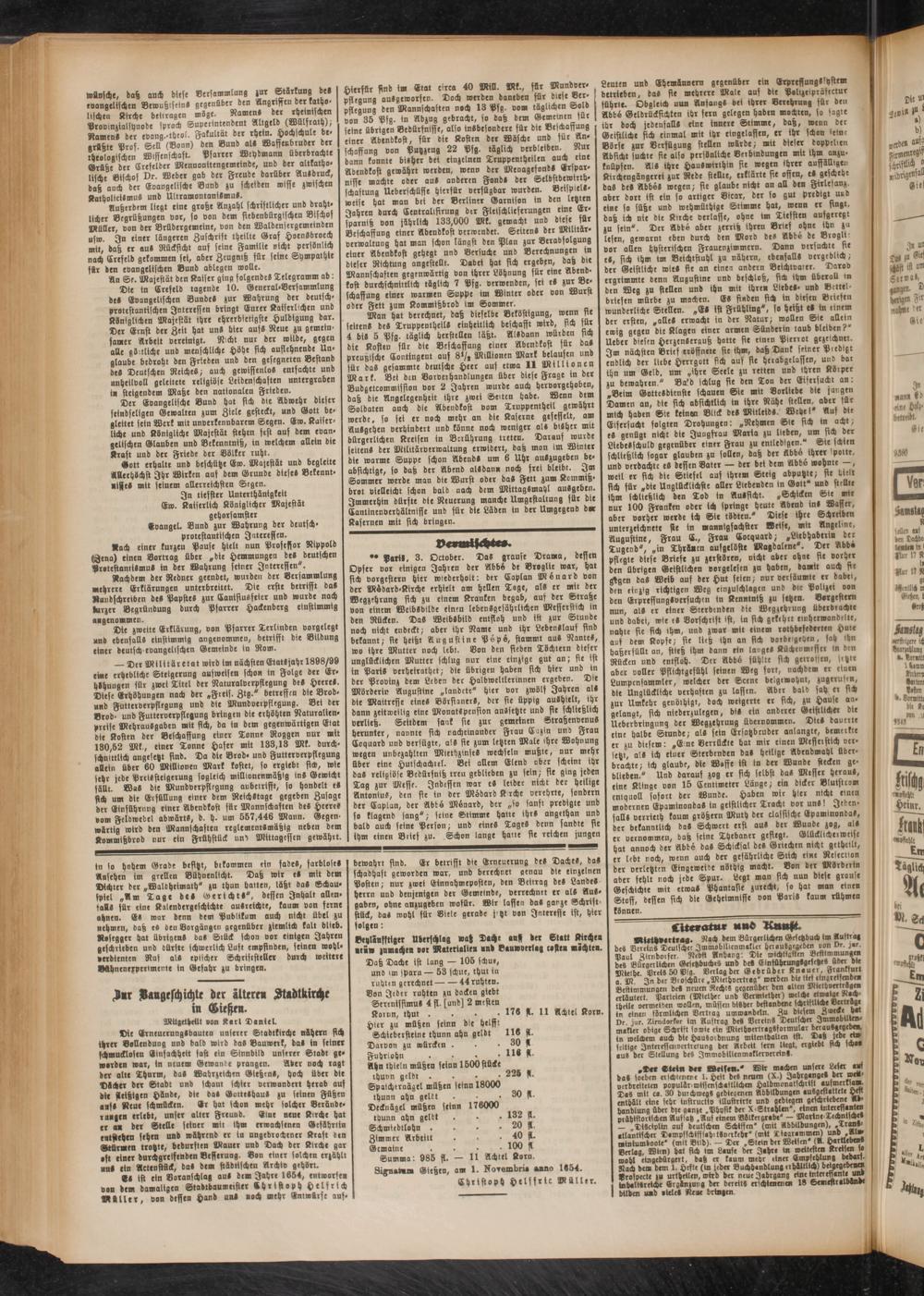 Die ErneueruugSdauteu unserer Stadtkirche nähern sich ihrer vollenduog und bald wird da» Bauwerk, da» io seiner schmucklosen Einfachheit fast ein Sinnbild unserer Stadt geworden war, in neuem Gewände prangen. Ader noch ragt der alte Thurm, da» Wahrzeichen Gießen», hoch über die Dächer der Stadt und schaut schier verwnndert herab auf die fleißigen Hände, die da» Gotteshau» zu seinen Füßen ans» Reue schmücken. Er hat schon wehr solcher Veränderungen erlebt, unser alter Freund. Eine neue Kirche hat er a» der Stelle feiner mit ihm erwachsenen Gefährtin entstehen sehen und während er in ungebrochener Kraft den Stürmen trotzte, bedurften Mauer und Dach der Kirche gar »ft einer durchgreifenden Vesteruag. Bon einer solchen erzählt uu» ein Aktenstück, da» de« städtischen Archiv gehört.