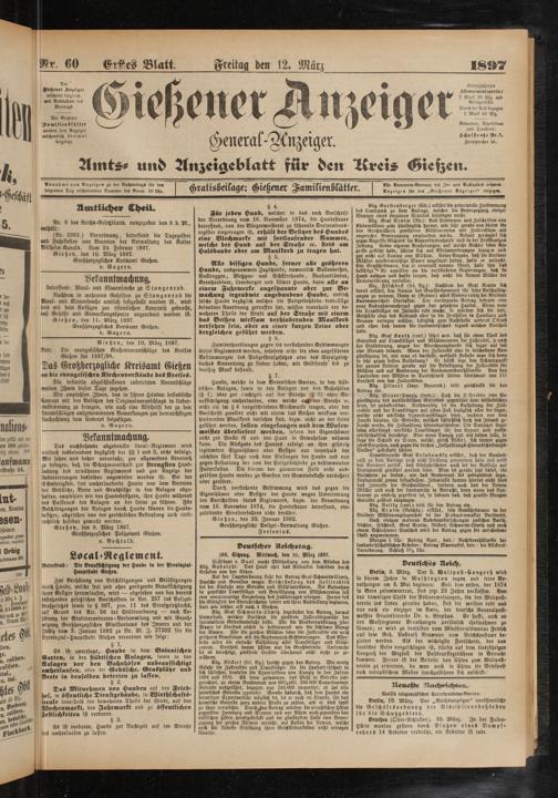 Der Oießener Anzeiger erscheint täglich, mit Ausnahme des MontagS.