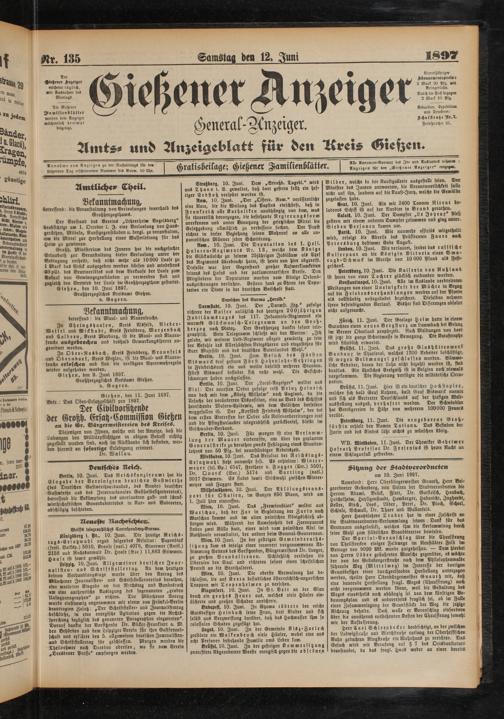 Die Gießener Aamiliendtätter werden dem Anzeiger wöchentlich dreimal beigelegl.