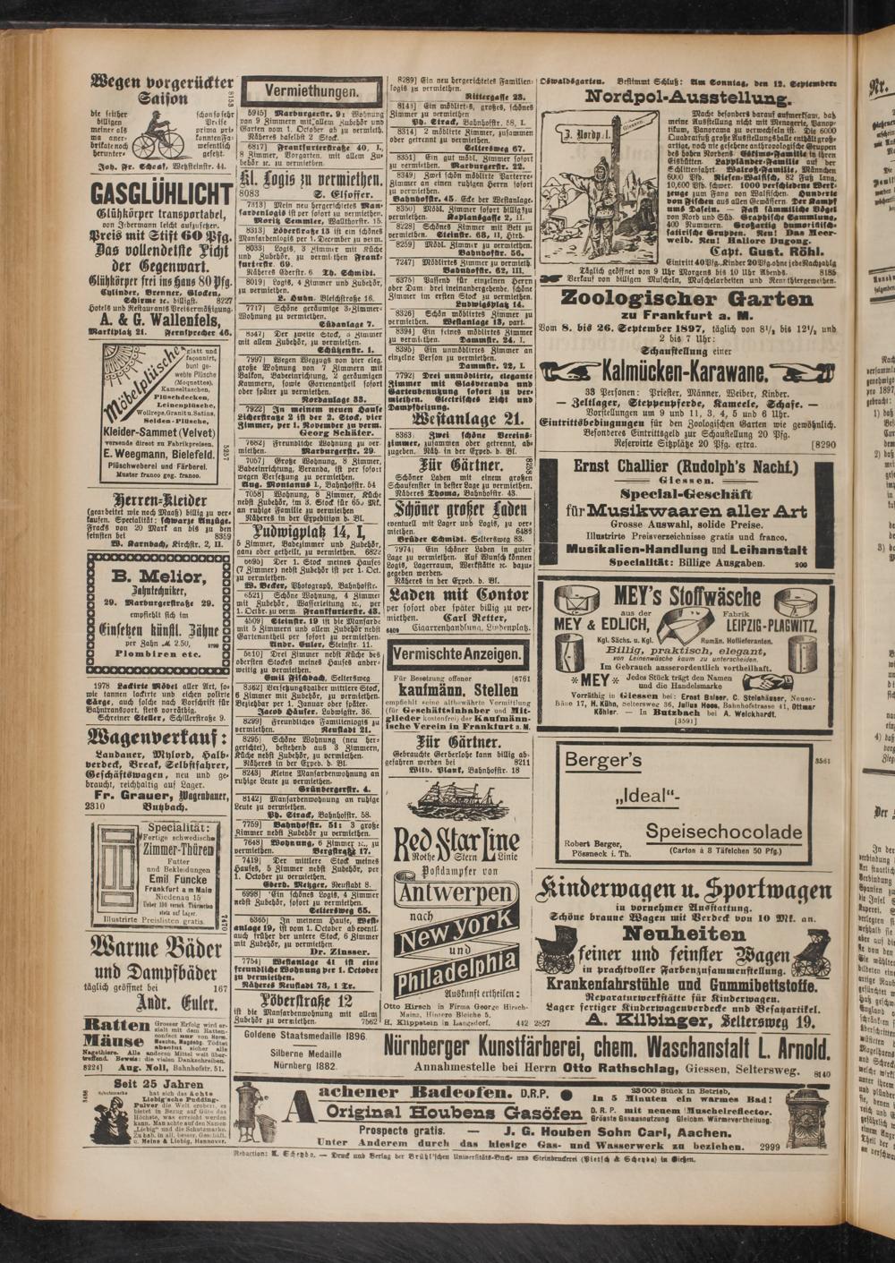 Vom 8. bis 26. September 1897, täglich von 8>/, bi» 12'/, und 2 bi» 7 Uhr: Schaustellung einer