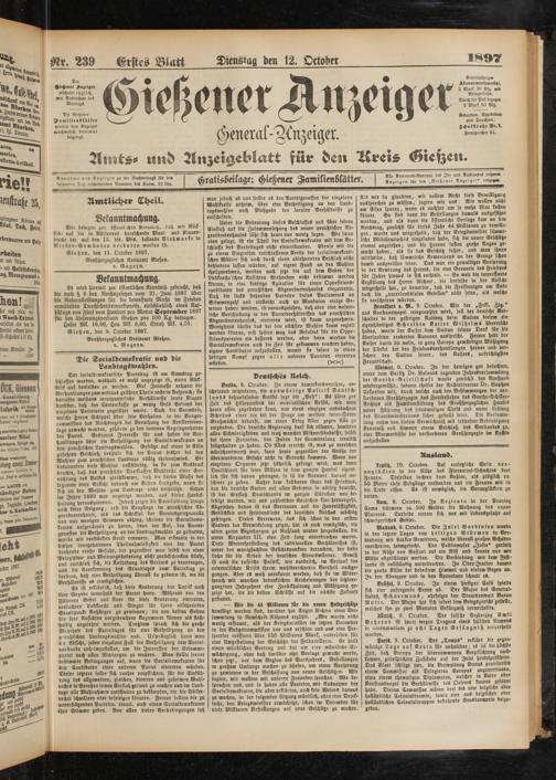 Nr. 239 Erstes Blatt Dienstag den 12. October