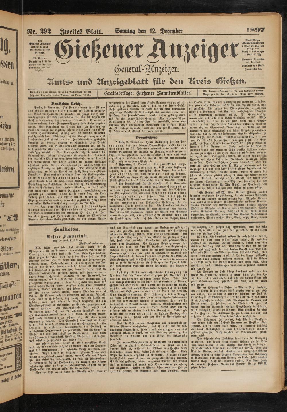 Nr. 292 Zweites Blatt. Soautag dev 12. December