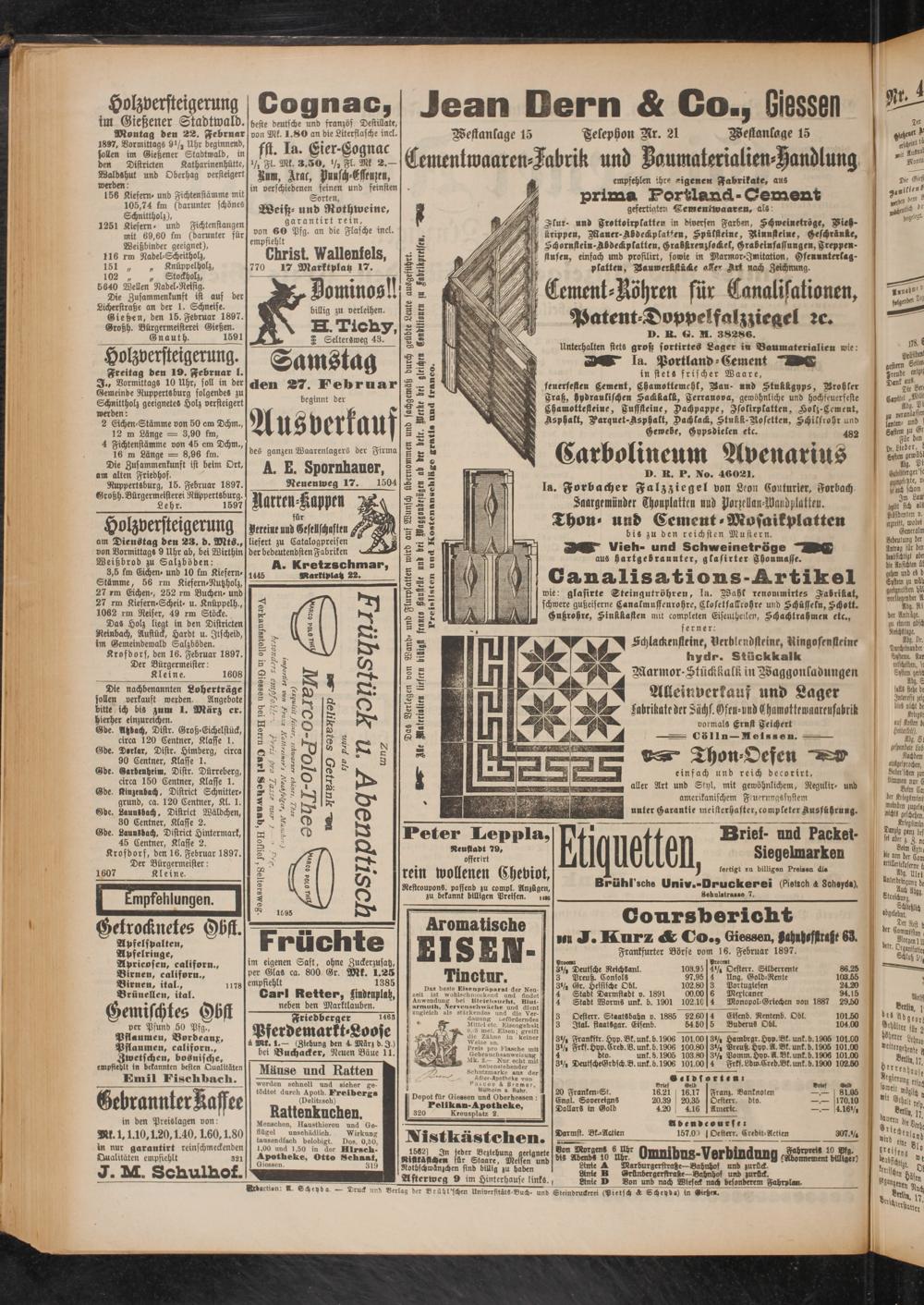 Montag den 22. Februar 1897, Vormittags 91/» Uhr beginnend, sollen im Gießener Stadtwald, in den Districten Katharinenhütte, Waldshut und Oberhag versteigert werden: