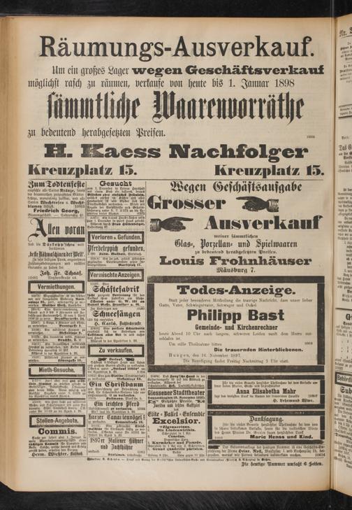 Der Gesammtauflage der heutigen Nummer ist eine Geschäfts-Empfehlung der Firma Heiur. Noll, Marktplatz 1 und Kirchenplatz 15, bei-