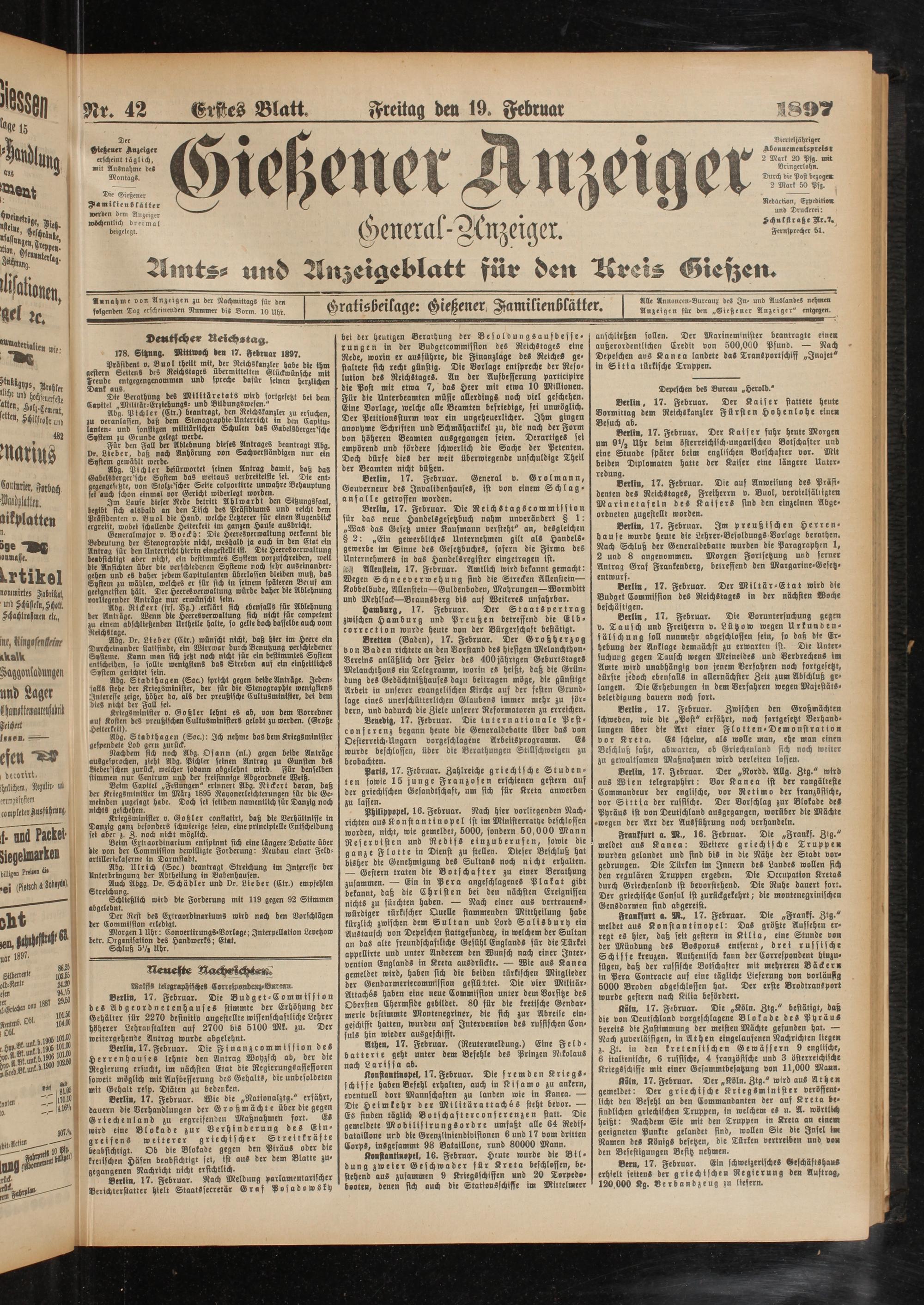 Nr. 42 Erstes Blatt. Neitag den 19. Februar