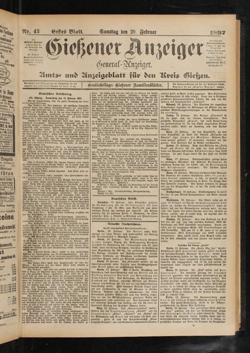 Die Gießener A»amlkieudtälter werden dem Anzeiger wöchentlich dreimal beigrlcgt.