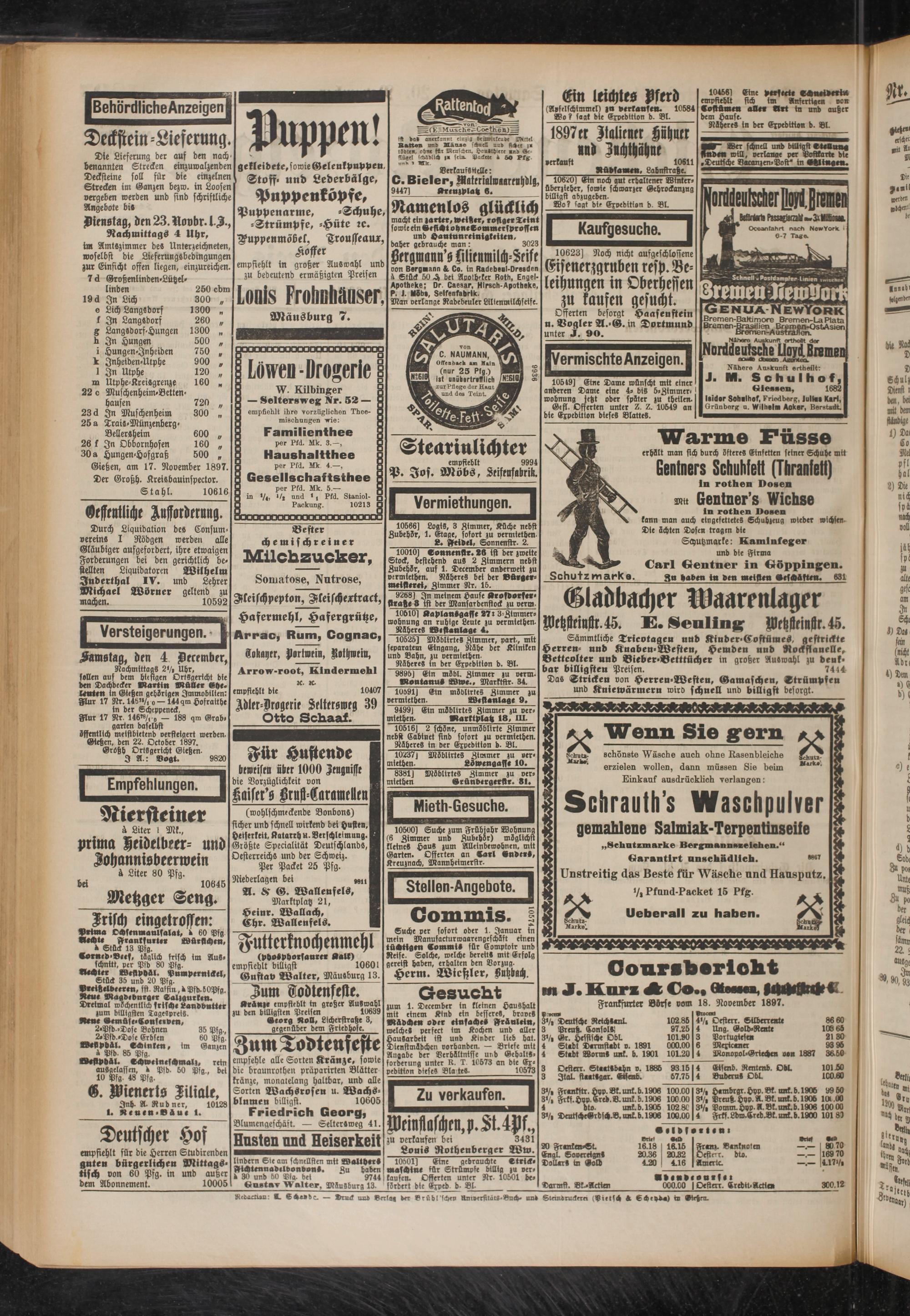 Gießen, am 17. November 1897. Der Großh. Kreisbauinspector.