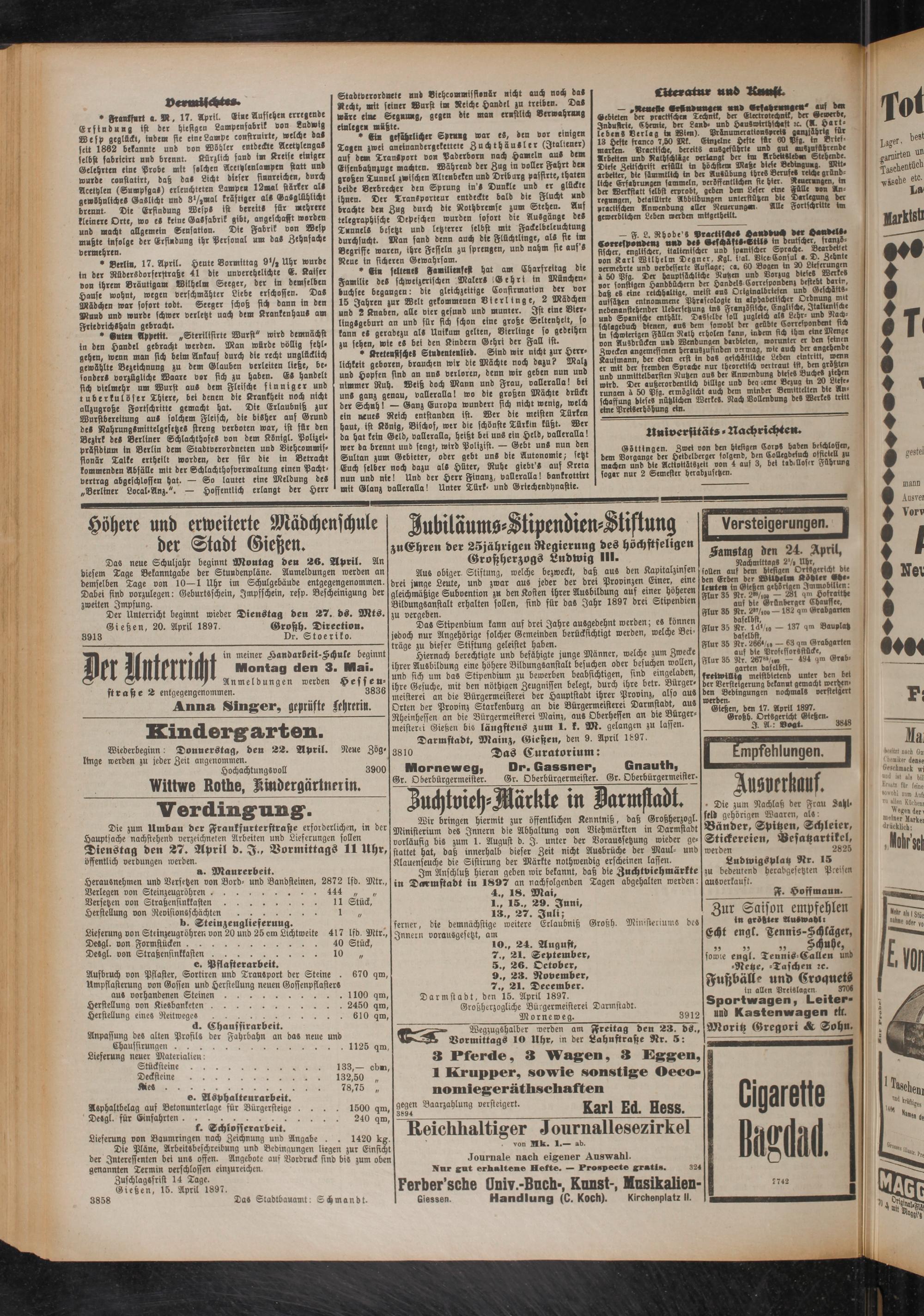 Zuschlagsfrist 14 Tage. Gießen, 15. April 1897.