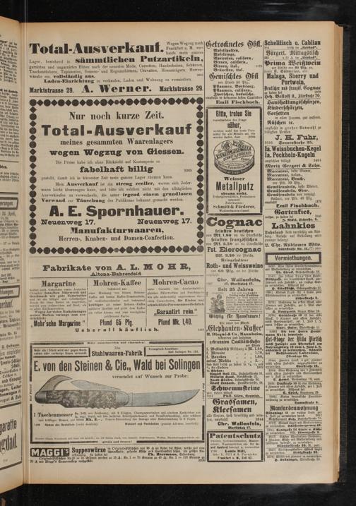 • Total-Ausverkauf • g meines gesammten W aarenlagers D ♦ wegen Wegzug von Giessen. ♦