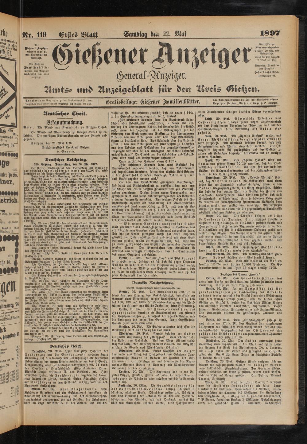Alle Annoncen-Bureaux deS In« und Auslandes nehme« Anzeigen für den „Gießener Anzeiger" entgegen.