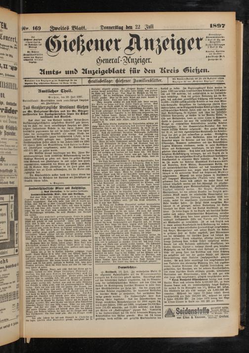 Aints- und Anzeigeblatt für den Avers Gießen.