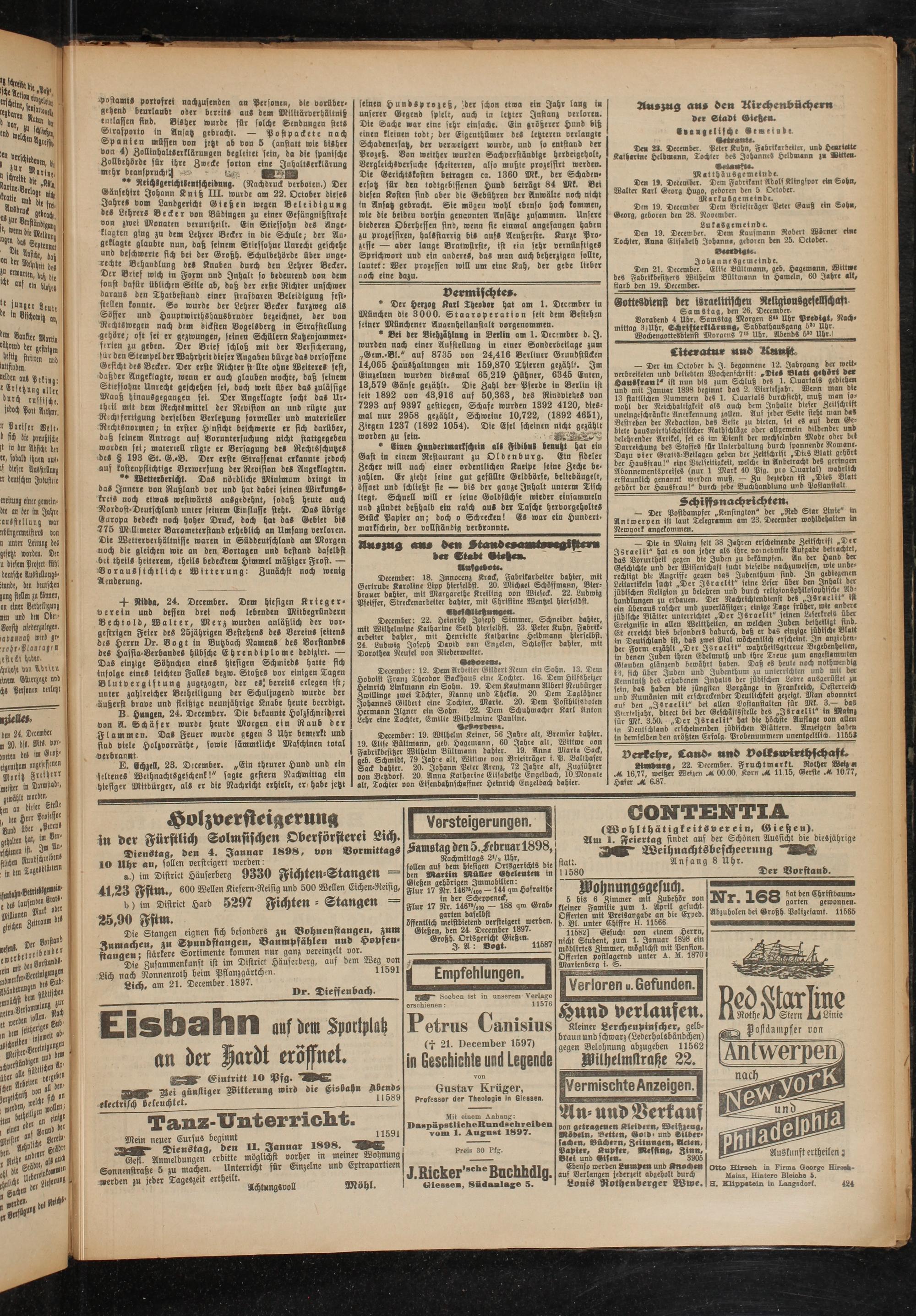 öffenttich meistbietend versteigert werden. Gießen, den 24. December 1897.
