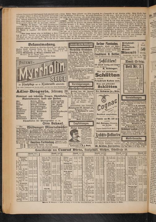 Coursbericht von Conrad Dietz, Bankgeschäft, Metzen, Schulstraße 10.
