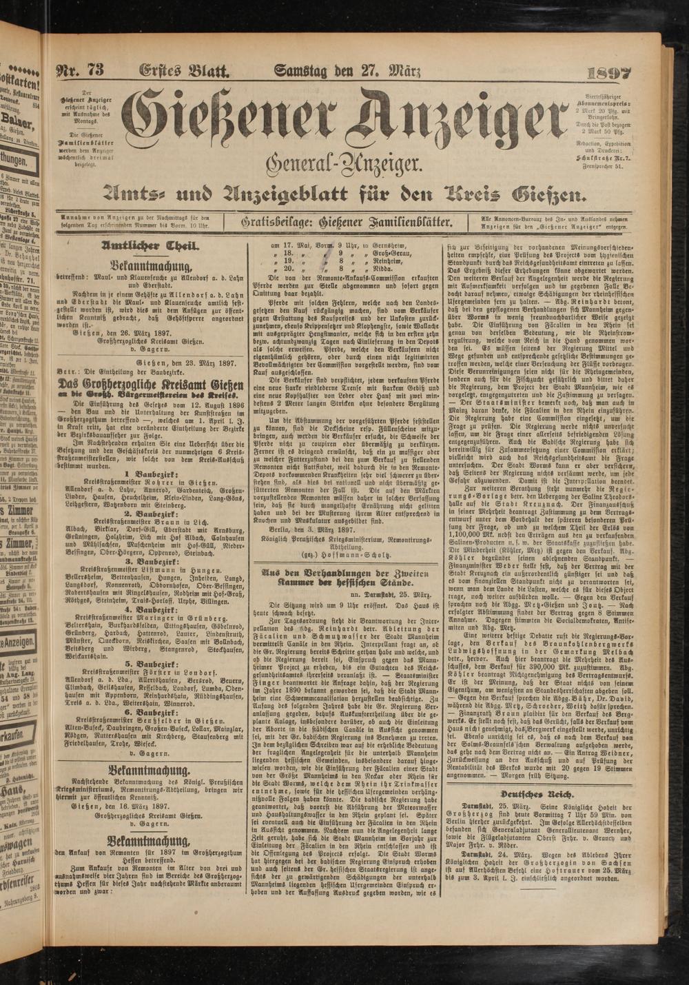 Nr. 73 Erstes Blatt. Samstag den 27. März JS&W