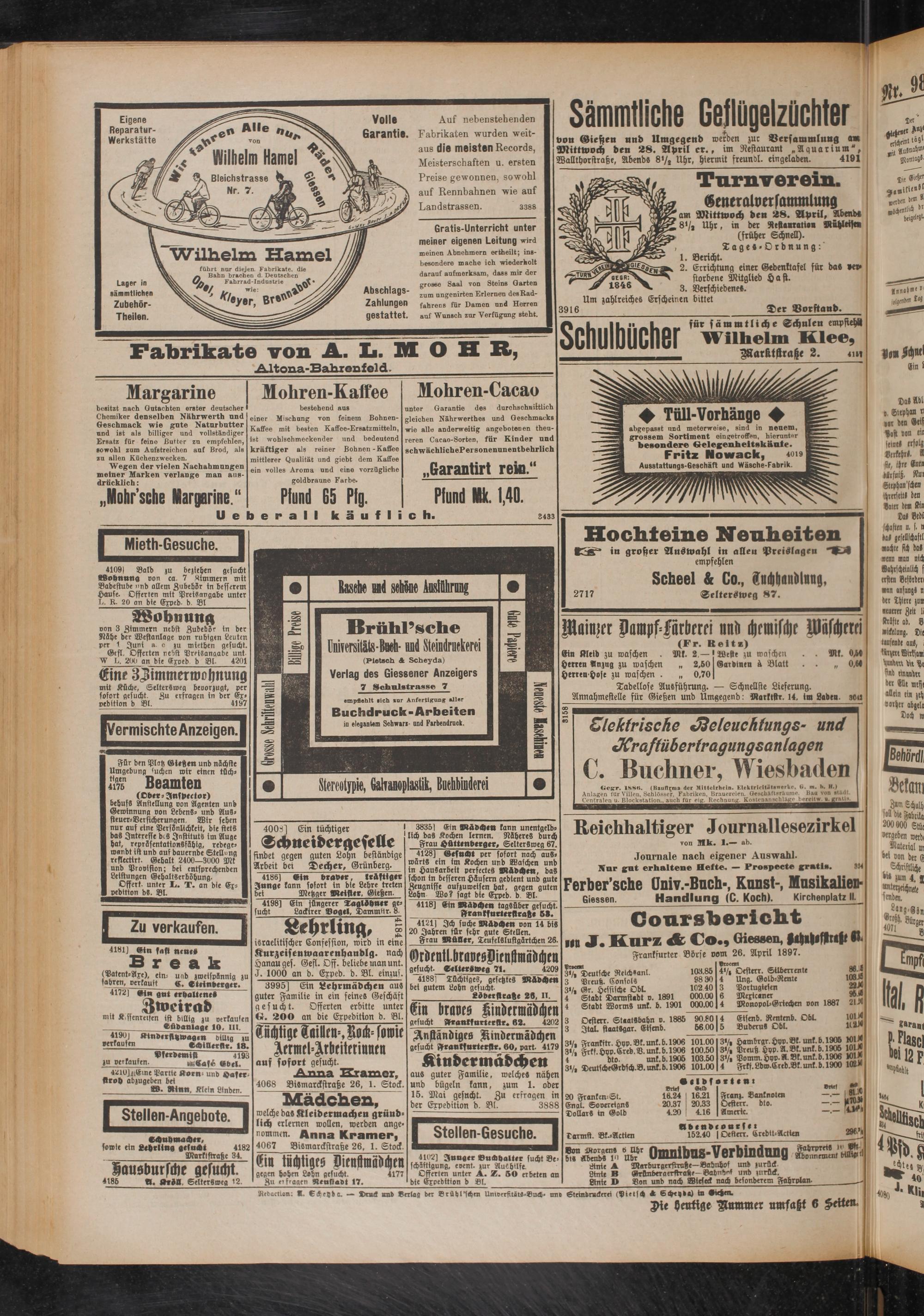 von Gießen und Umgegend werden zur Versammlung am Mittwoch den 28. April er., im Restaurant „Aquarium", Wallthorstraße, Abends 81/, Uhr, hiermit freunvl. eingeladen. 4191