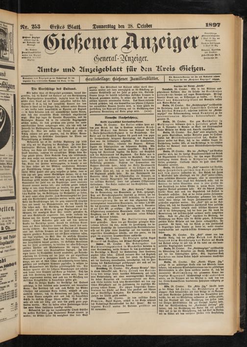 Gießener Anzeiger erscheint täglich, mit Ausnahme des Montag».