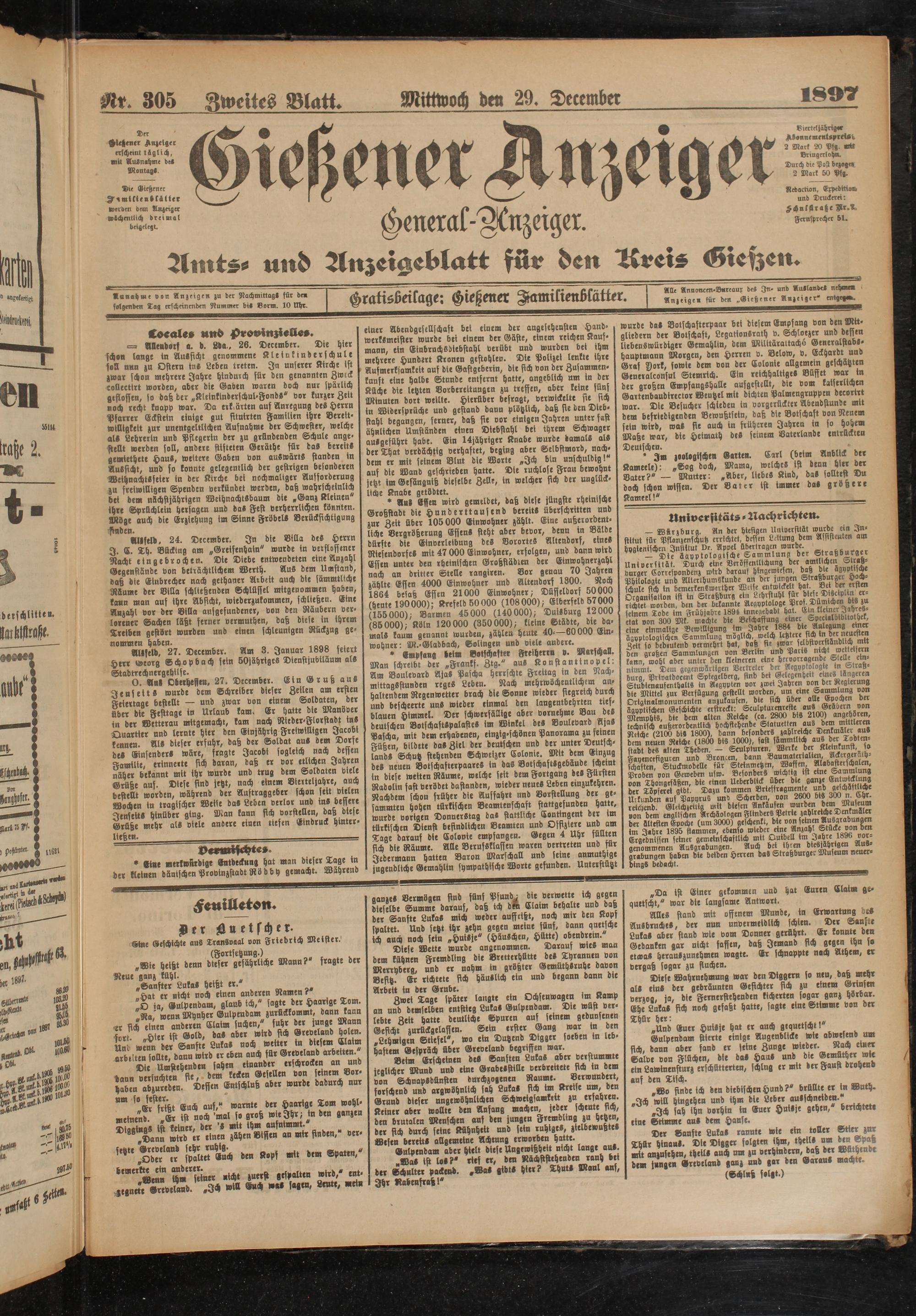 Nr. 305 Zweites Blatt. Mittwoch de« 29. December