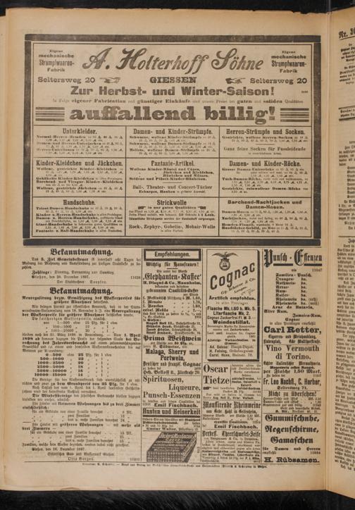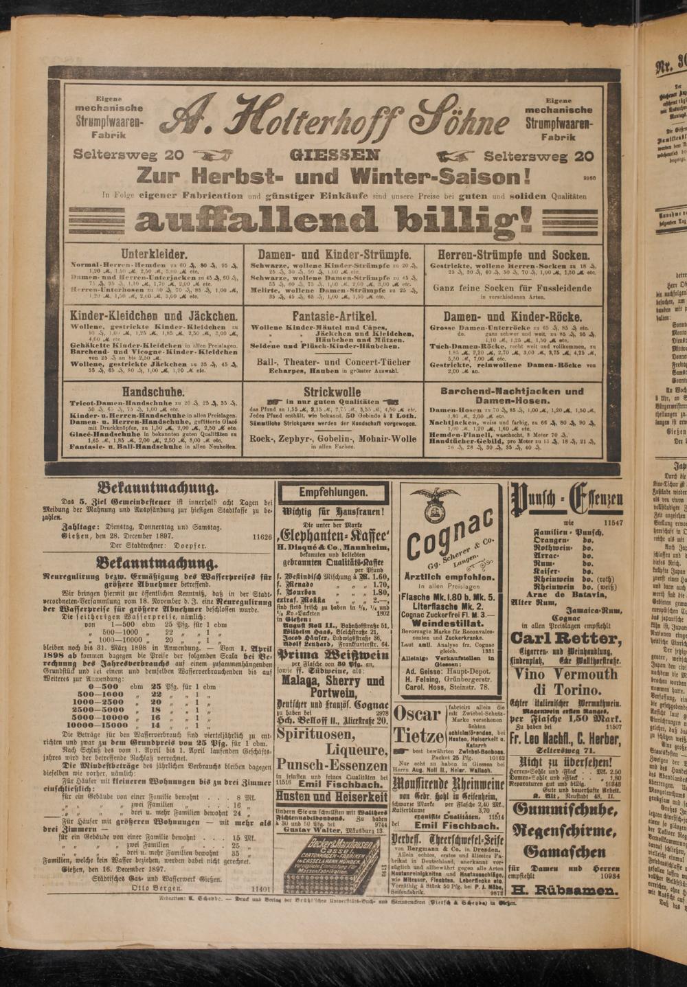 Zahltage: Dienstag, Donnerstag und Samstag. Gießen, den 28. December 1897.