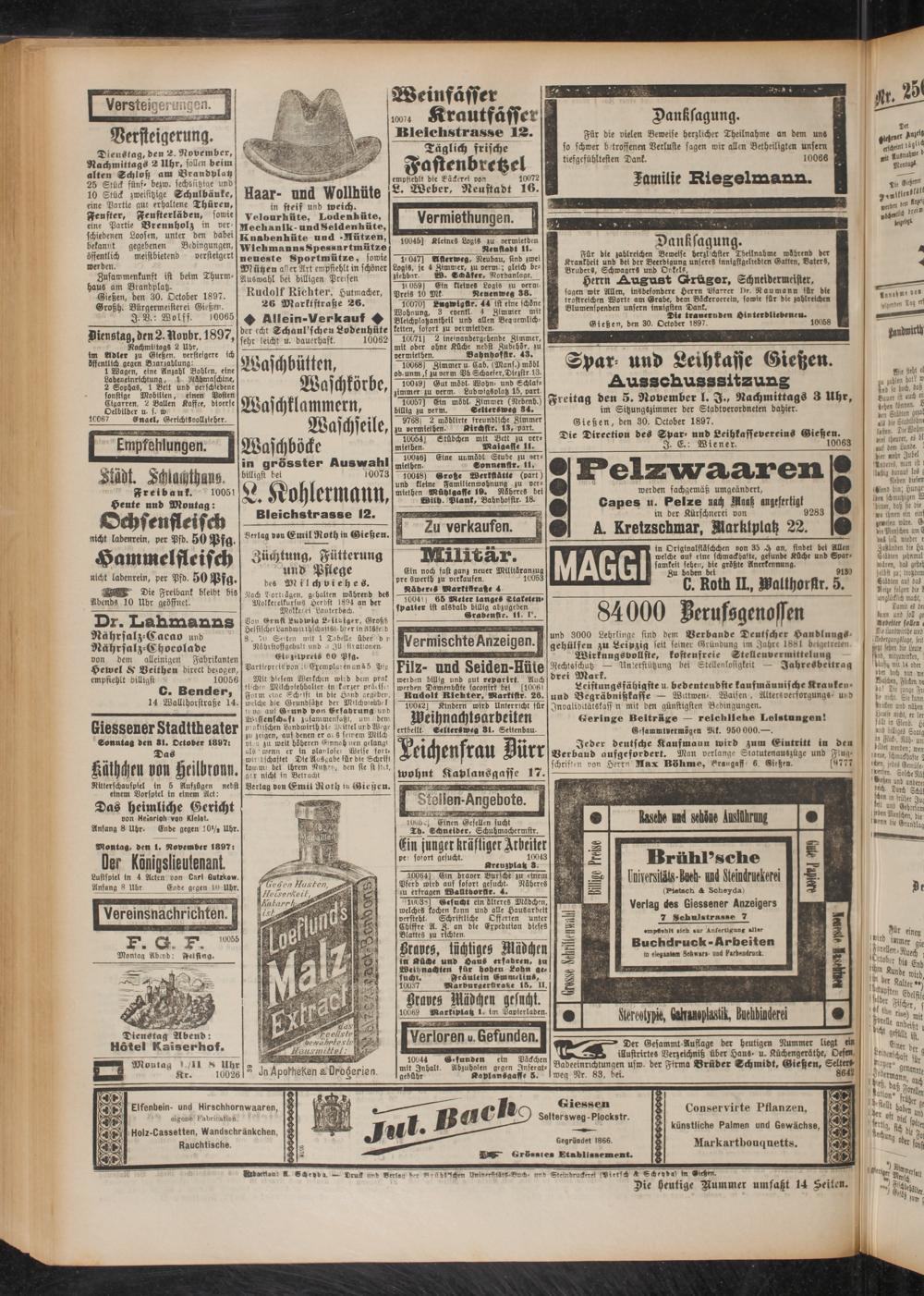 Gießen, den 30. October 1897. 10058
