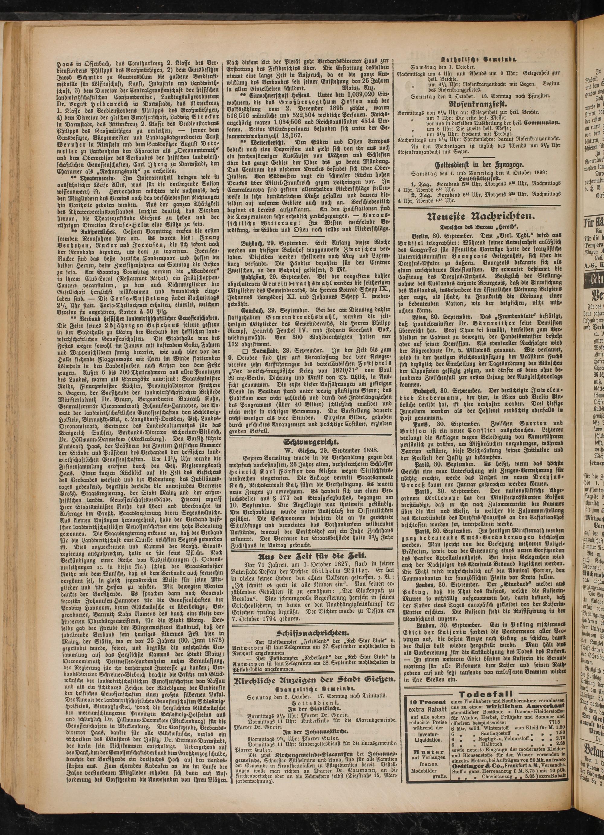 W. Gieße», 29. September 1898.