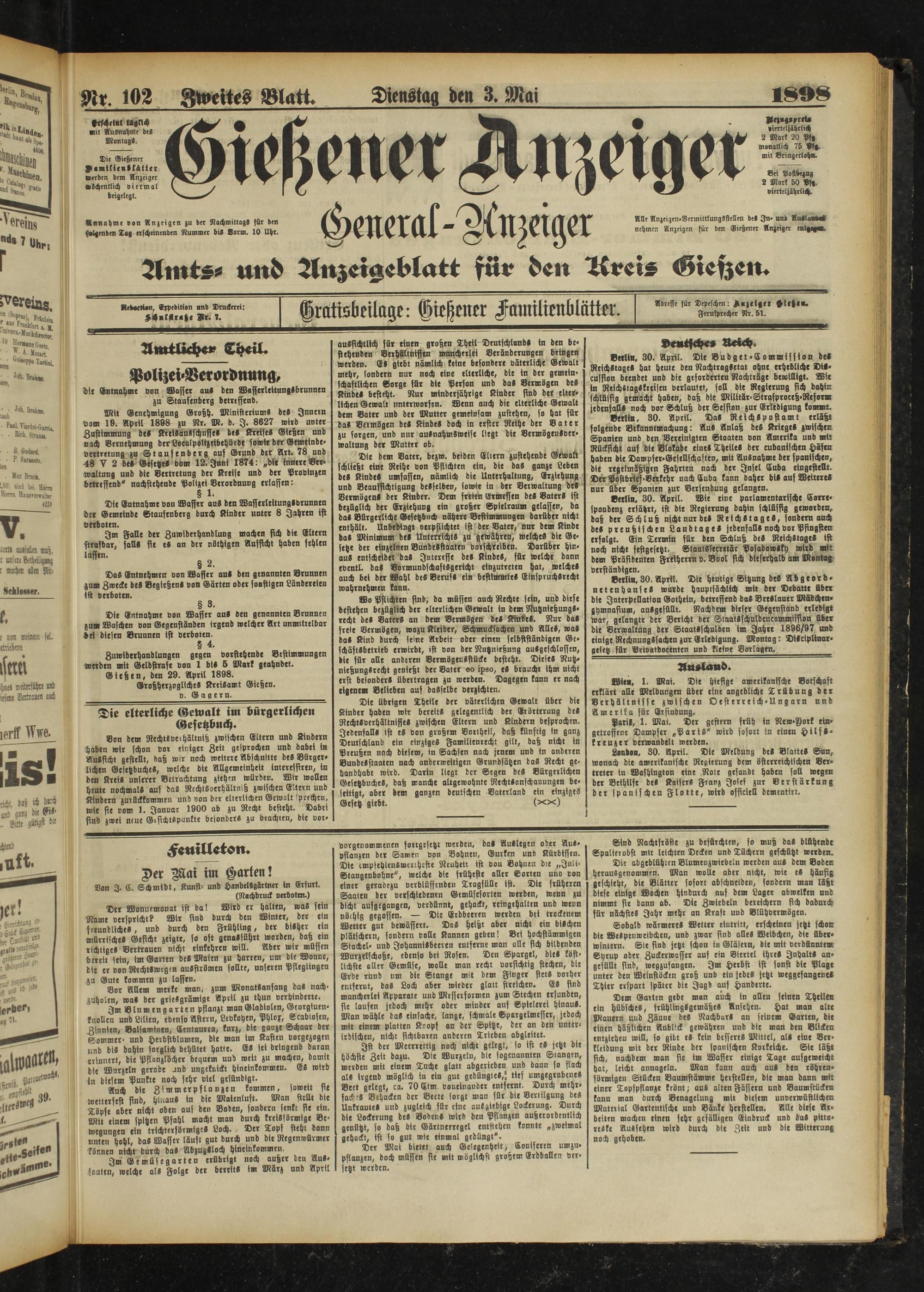 Nr. 102 Zweites Blatt. Dienstag den 3. Mai