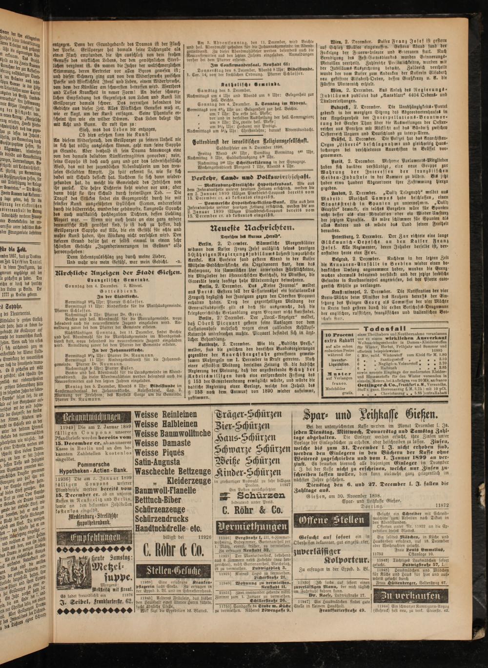 Kirchliche Anzeigen der Stadt Giefzen.