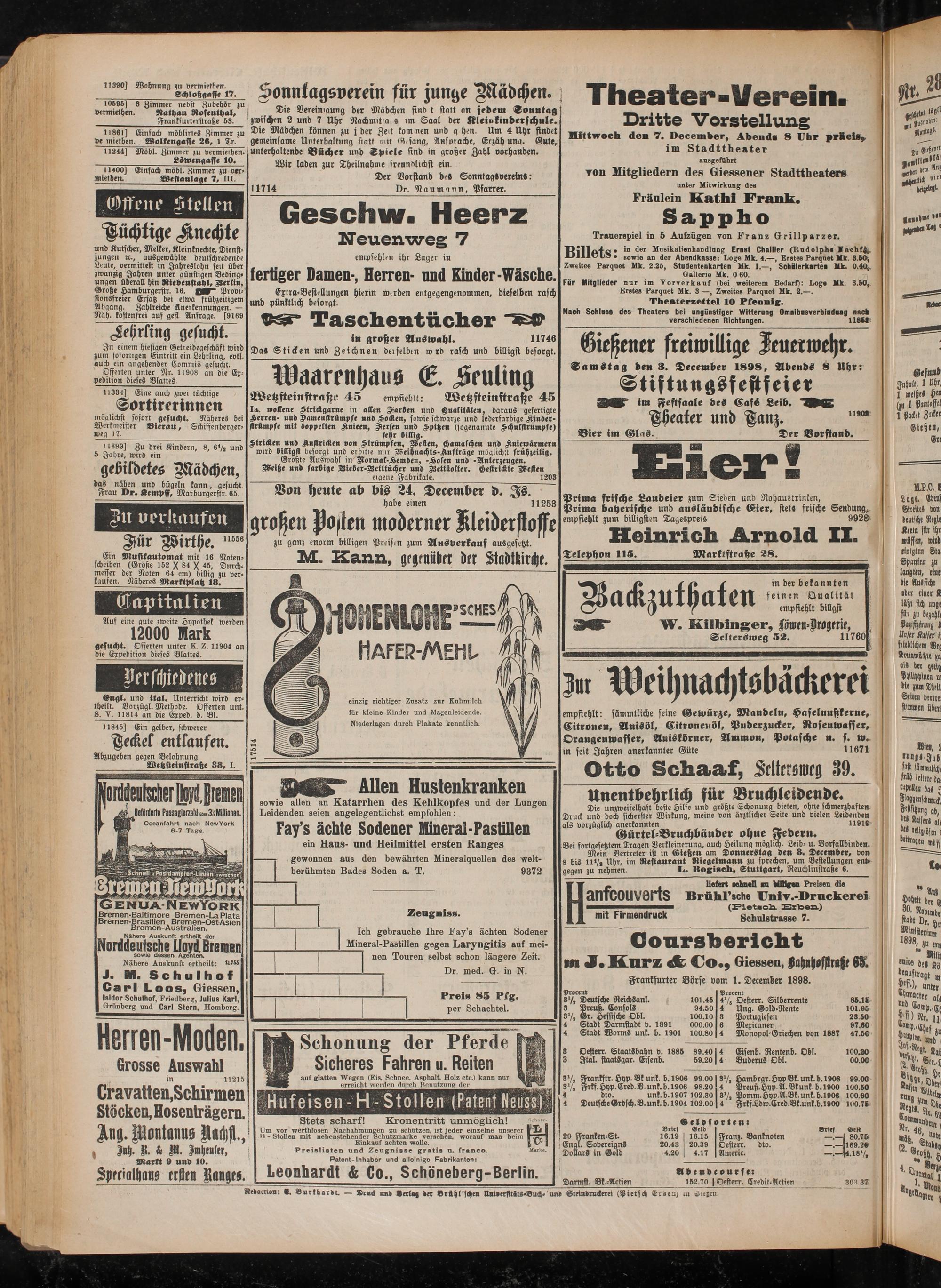 Samstag de« 3. December 1898, Abends 8 Uhr: