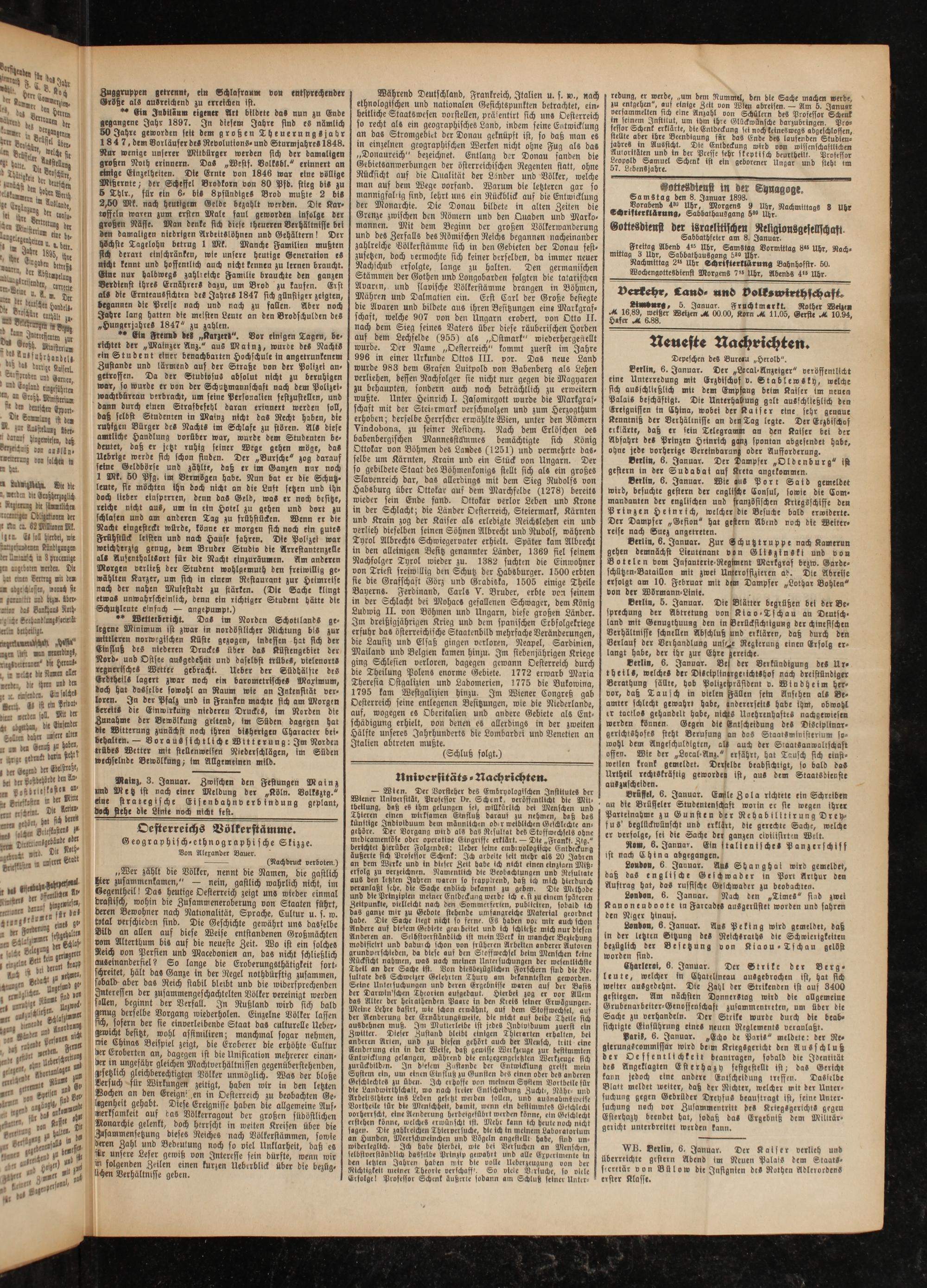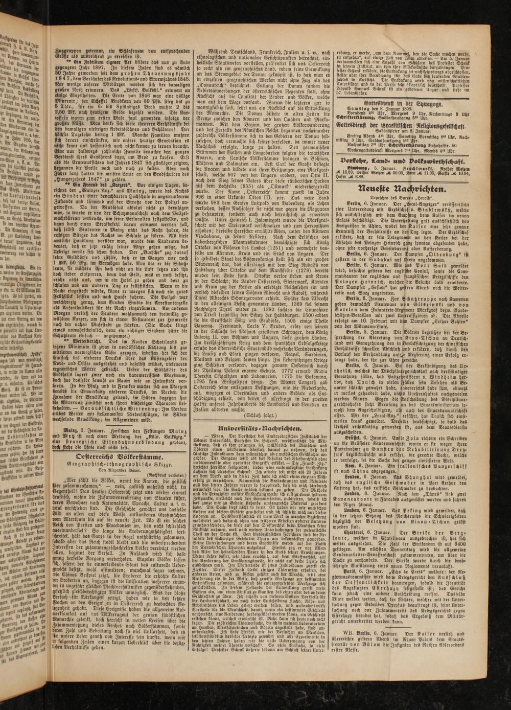 redung, er werde, „um dem Rummel, den die Sache machen werde, zu entgehen", auf einige Zeit von Wien abreifen. - Am 5. Januar versammelten sich eine Anzahl von Schülern des Professor Schenk in seinem Institut, um ihm ihre Glückwünsche darzubringen. Pro- feffor Schenk erklärte, die Entdeckung fei noch keineswegs abgeschlossen, stellte aber ihre Beendigung für das Ende des laufenden Studienjahres in Ausficht. Die Entdeckung wird von wissenschaftlichen Autoritäten und in der Presse fehr skeptisch beurtheilt. Professor Leopold Samuel Schenk ist ein geborener Ungar und steht tm 57. Lebensjahre.
