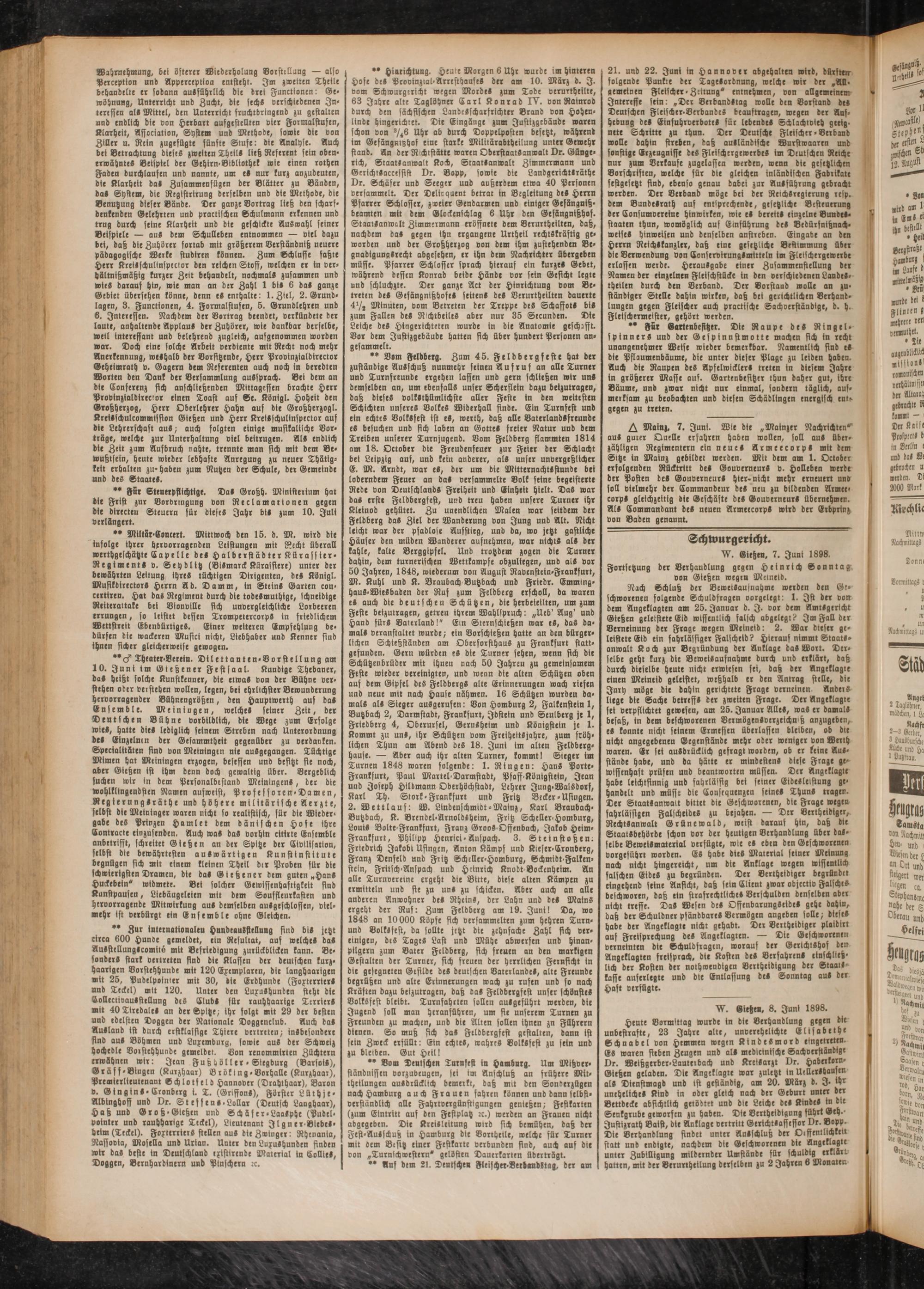 W. Gießen. 7. Juni 1898. Fortsetzung der Verhandlung gegen Heinrich Sonntag von Gießen wegen Mcmeid.