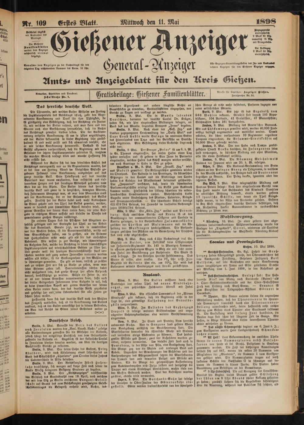 Die Gießener Mamitienvtälter »erden dem Anzeiger »SchenNich viermal beigelegt.