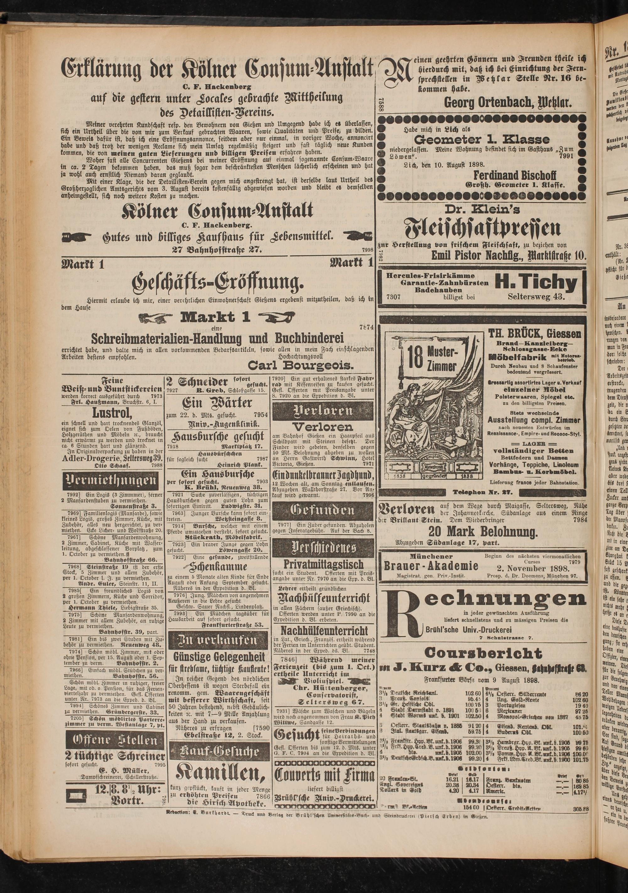 Woher fast alle Concurrenten Gießens bei meiner Eröffnung auf einmal sogenannte Consum-Waare in cq. 2 Tagen bekommen haben, das muß sogar dem beschränktesten Menschen lächerlich erscheinen und hat ja wohl auch ernstlich Niemand daran geglaubt.