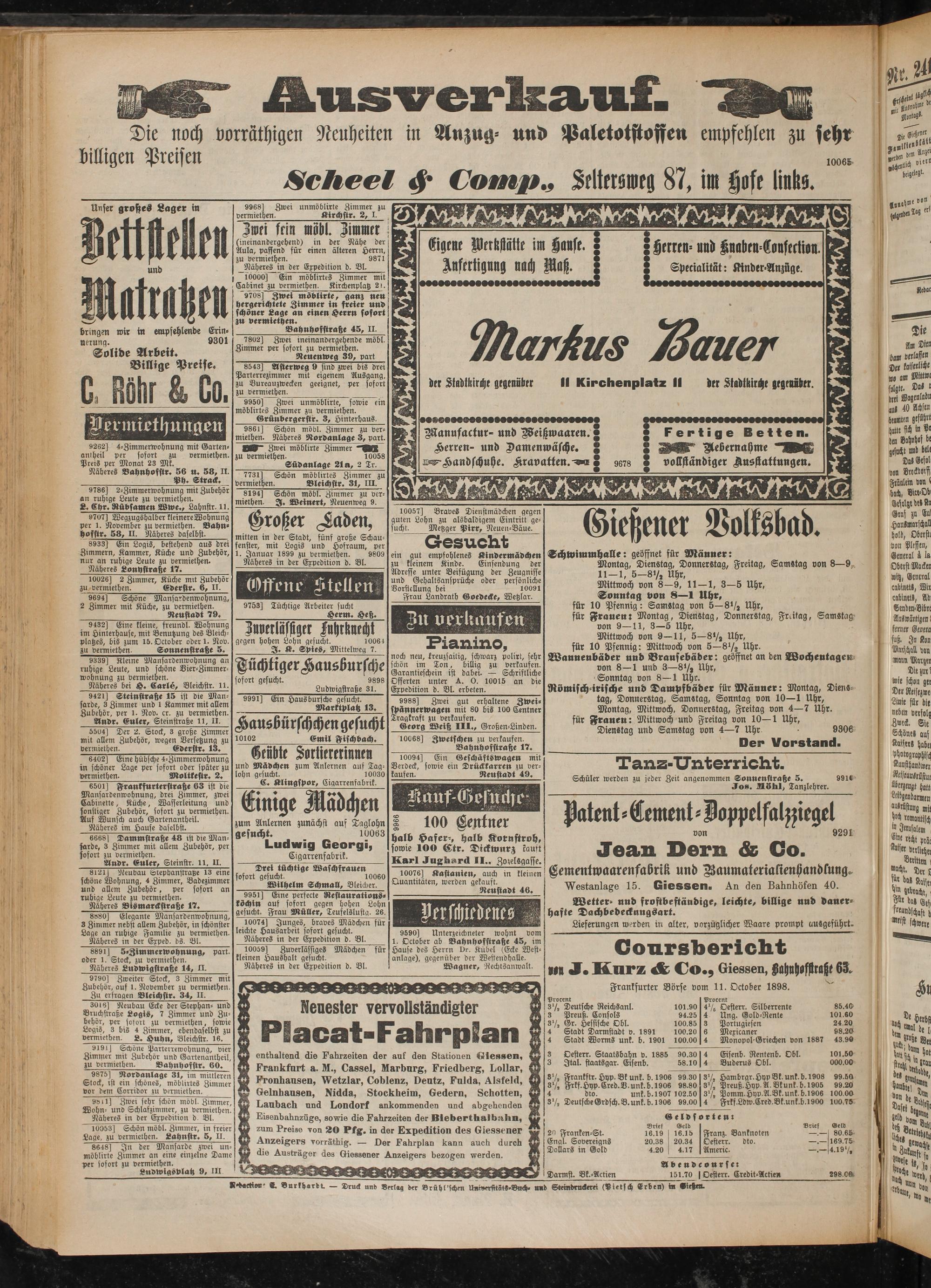 Frankfurter Börse vom 11. October 1898.