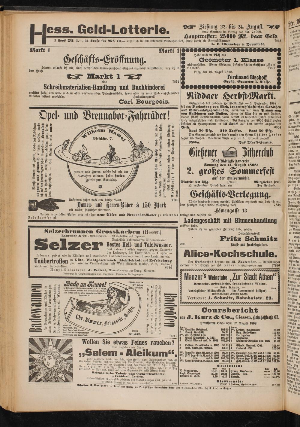 Hiermit erlaube ich mir, einer verehrlichen Einwohnerschaft Gießens ergebenst mitzutheilen, daß ich in dem Hause