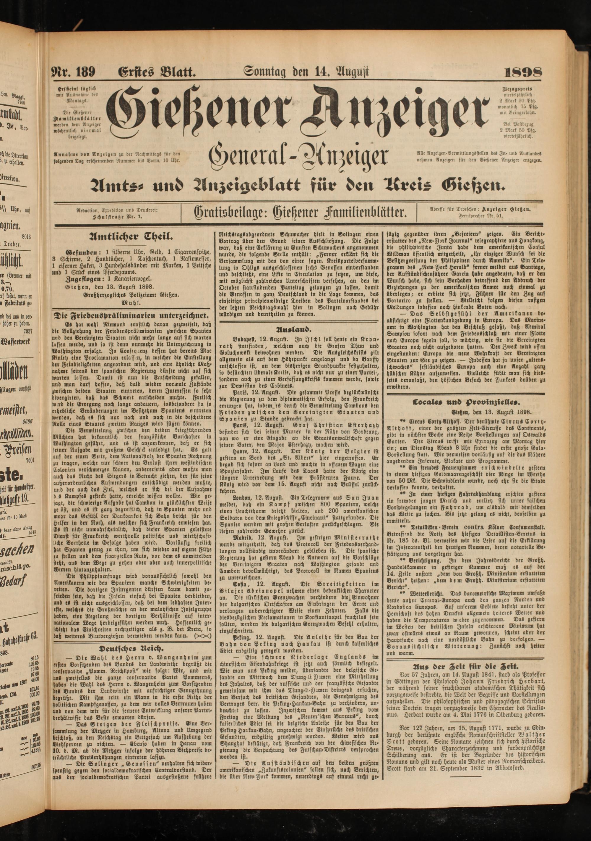 Gießen, den 13. August 1898.