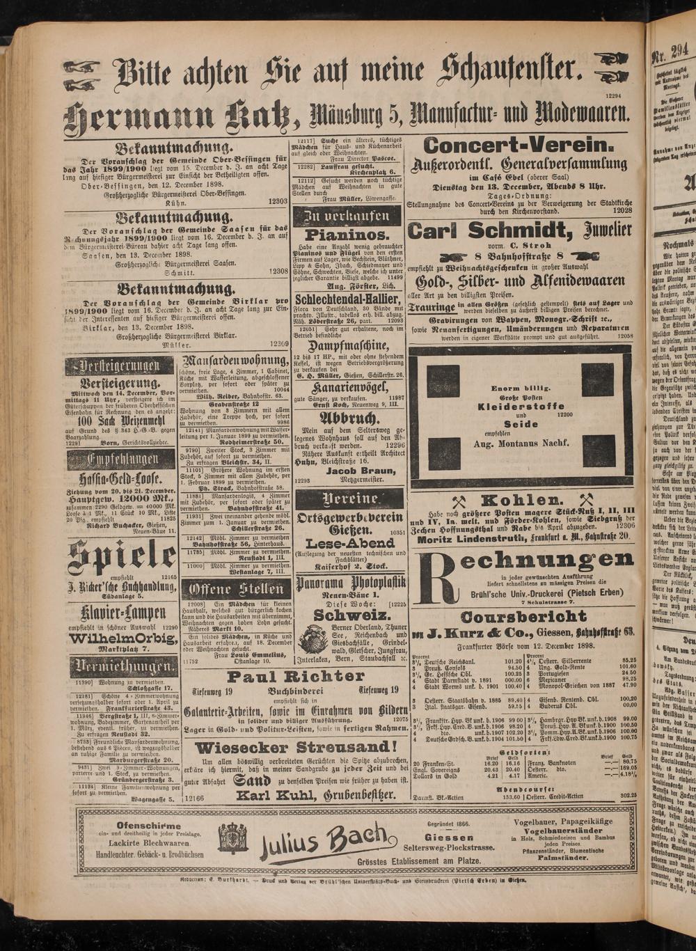 Ob er-Bessin gen, den 12. December 1898. Großherzogliche Bürgermeisterei Ober-Bessingen. Kühn.