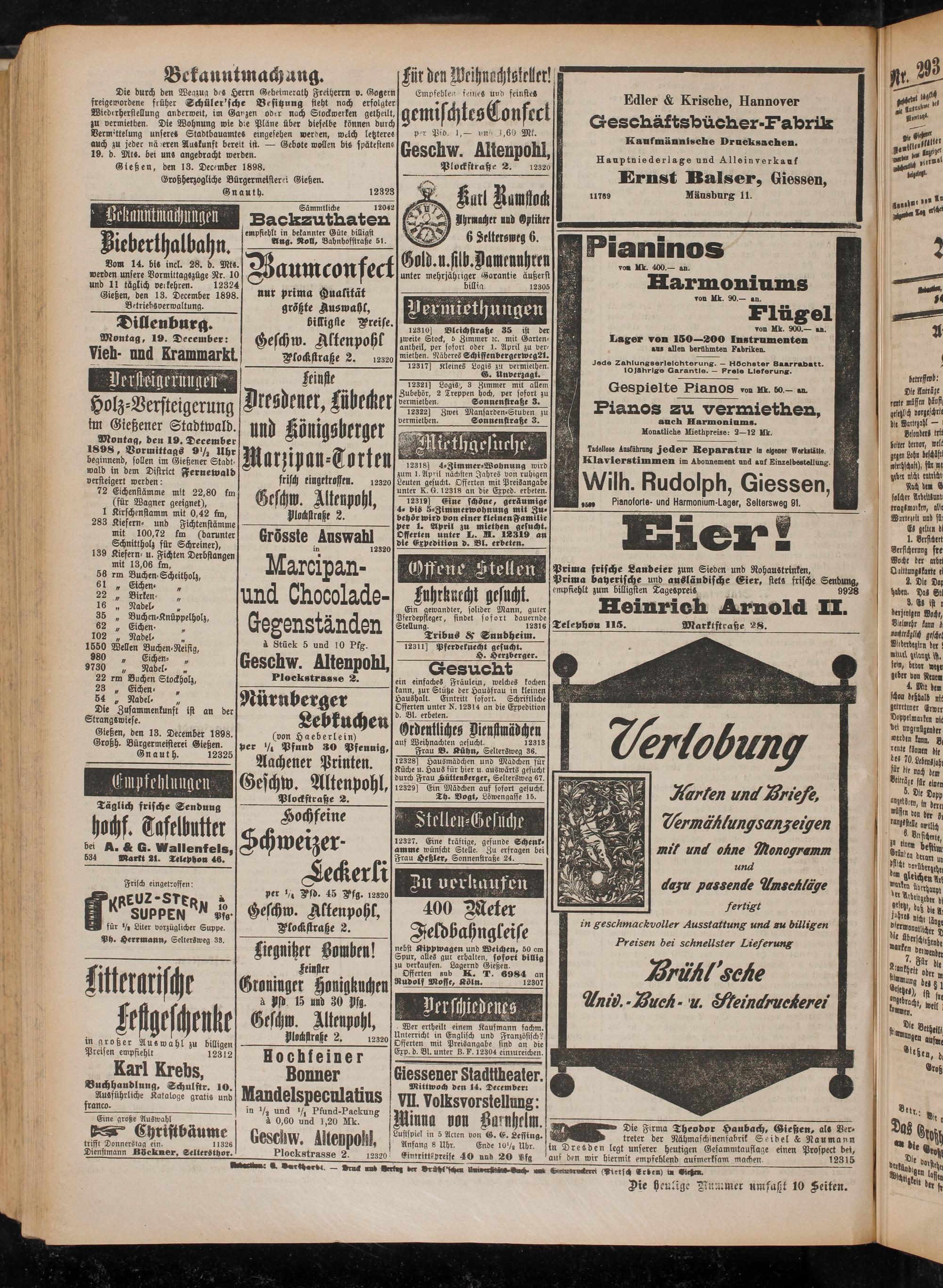 Gießen, den 13. December 1898.