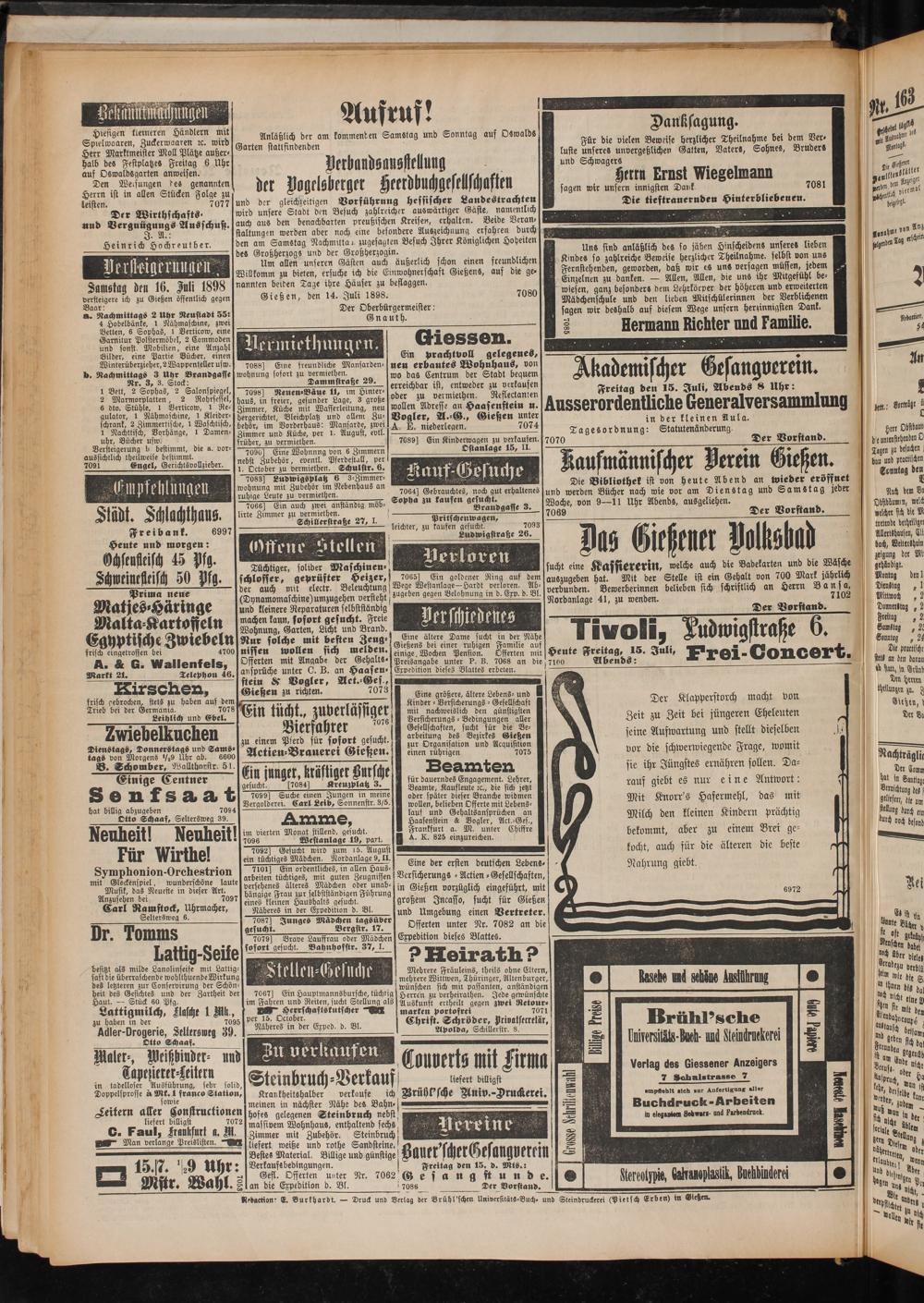 Verlag des Giessener Anzeigers 7 Sohnl>trasBe 7 empfiehlt sich »ar Anfertigung »Iler Buchdruck-Arbeiten in elegantem Sehwari- und Farbendruck.