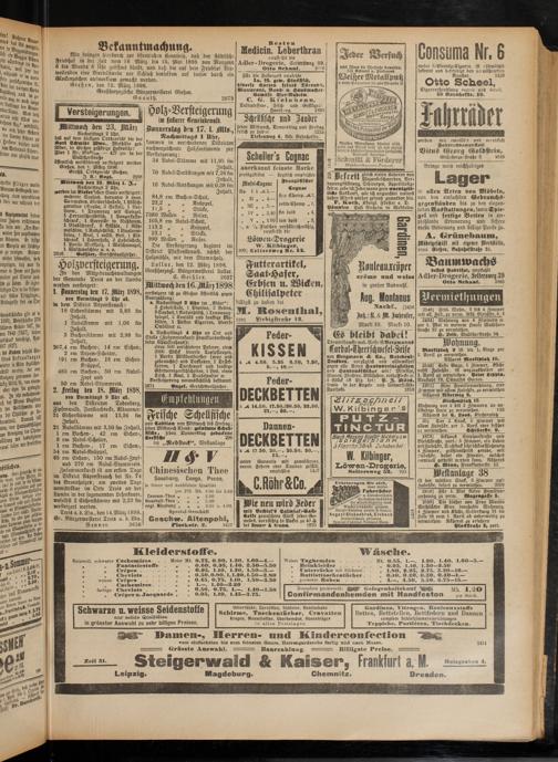 »erben im Bteker'schen Saale versteigert: mehrere Sophas, darunter 3 neue, Co m moden, Kleiderschränke, 1 Plüschgarnitur (Sopha, 2 Sessel), 1 Ver- ttcow, 1 Trumeaux mit Spiegel, 1 Herrenschreibtisch, 1 Panzerkassa- schrank, 1 Secretär in Nußbaum, 1 GlaSschrank, 6 Stühle, 1 Nähmaschine, 1 Ausziehtisch, 1 Linoleumbelag, t Real, 1 vollst. Bett, 1 Eis schrank, 1 Ladentheke, 2 Hobelbänke, 1 Partie Werkholz, 1 Waschmangel, 1 Waschmaschine u o. a.