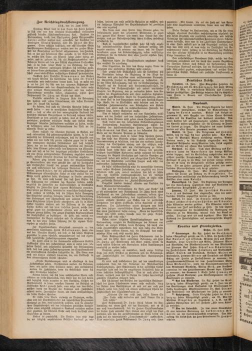Er ging soweit, einen in seiner Nähe sitzenben Herren, ber ihm nicht bas Minbeste gethan hatte, persönlich unter Namensnennung zu insultiren, was ihm eine verbiente Zurechtweisung bes Vorsitzenben eintrug und ihn nöthigte, nach- träglich zu revociren und um Entschuldigung zu bitten. Sachlich stand seine Rede auf dem Niveau der gewerbs- mäßigen sozialistischen Agitatoren, welche während der Wahlbewegung die Gegend überfluthen und dasselbe Berschen gut eingepaukt haben und enthielt zum allergrößten Theile Dinge, die mit den schwebenden politischen Fragen auch nicht den entferntesten Zusammenhang haben.